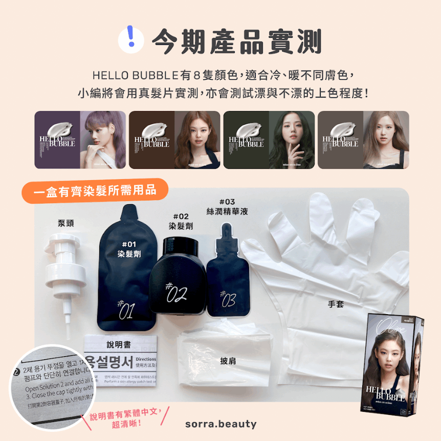 今次分享Blackpink同款髮色的DIY產品-HELLO BUBBLE泡泡染髮系列。在家中為自己染髮快捷又方便,而且一盒有齊染髮所需用品,不用特別再另外準備,懶人恩物!
