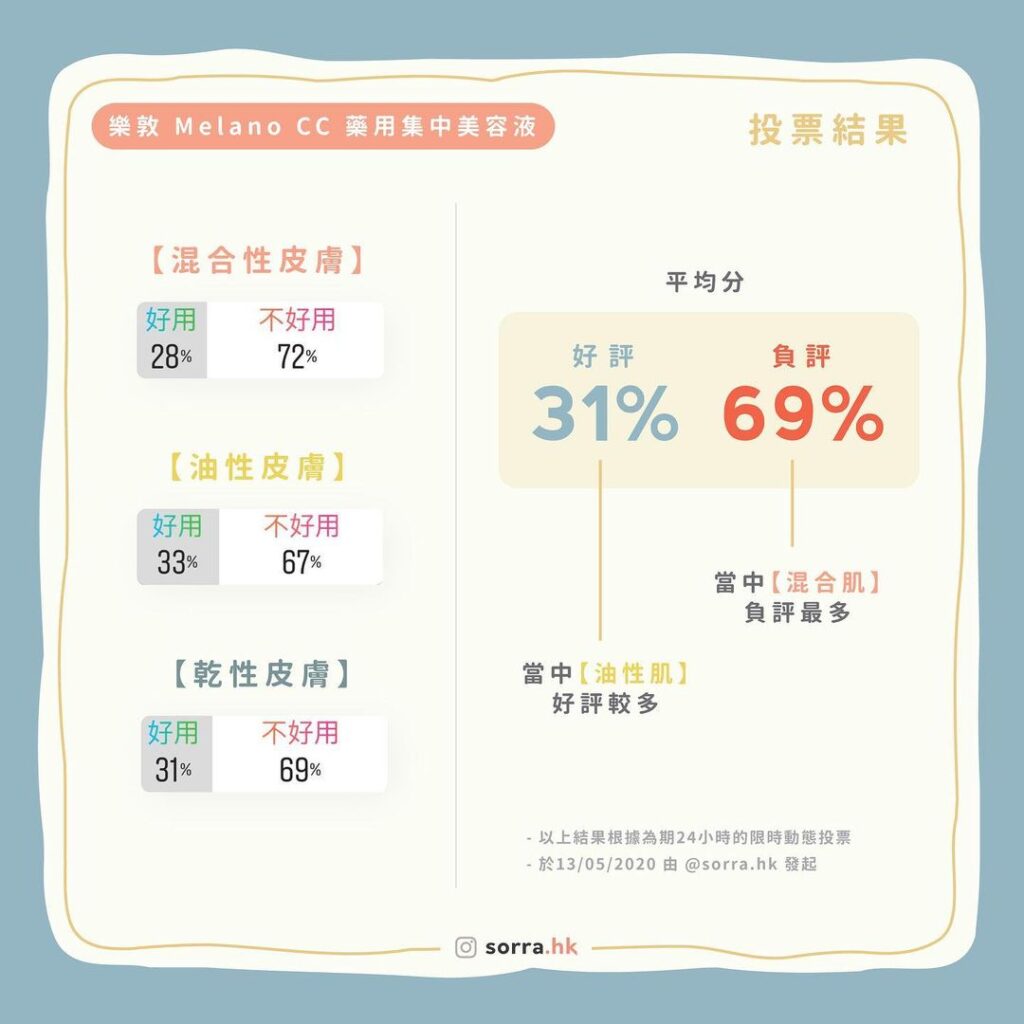 我們進行了為期24小時的限時動態投票,綜觀來說,大部分膚質都覺得不好用呢: