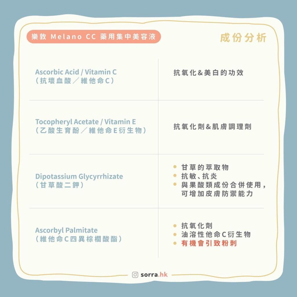 ➡️ Ascorbyl Palmitate(維他命C四異棕櫚酸酯)
