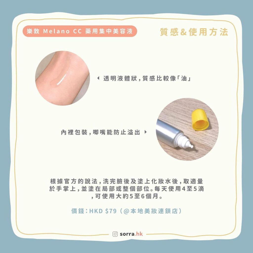 因此 #sorra產品搜查隊 的第一回就選了曾經在網絡上風雲一時,不但在日本熱銷,而且在國產「小紅書」也被熱烈追捧的維他命C淡斑精華《Melano CC 藥用黑斑集中保養美容液》,作為第一次評測的產品~