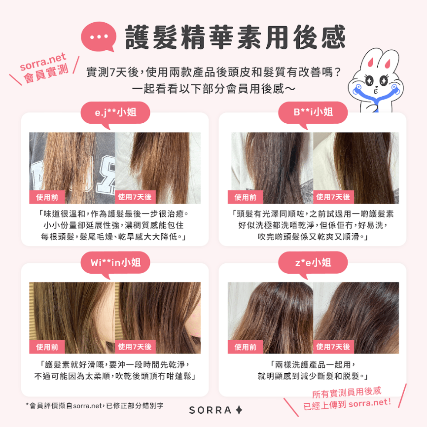 實測7天後,sorra.net會員使用兩款產品後頭皮和髮質有改善嗎?一起看看以下部分會員用後感~