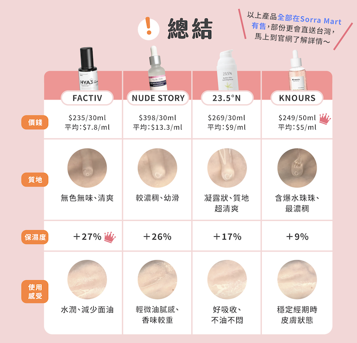 相信一支好的保濕精華,是一年四季、不論任何膚質的人士都想尋找的!因為只有在肌膚充分保濕的情況下,才可以呈現出光澤和彈性。因此,保濕精華液一直以來都十分受歡迎。今日Sorra選了4款保濕精華,為大家逐一試用,比較一下它們的使用感受~