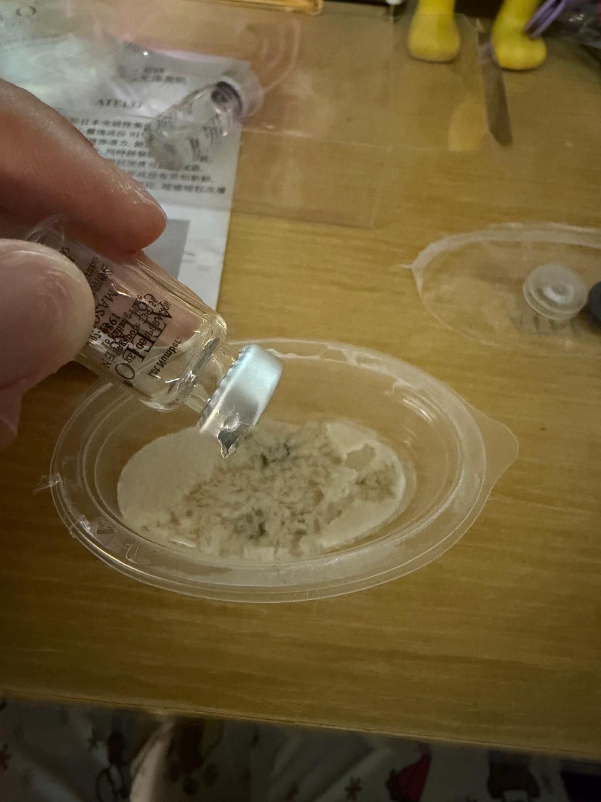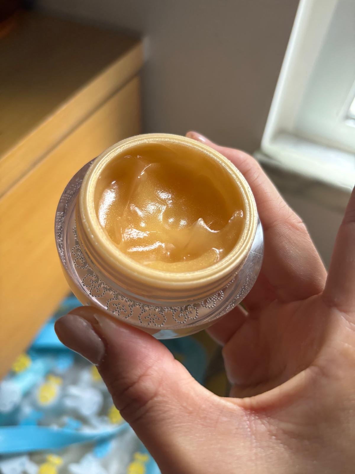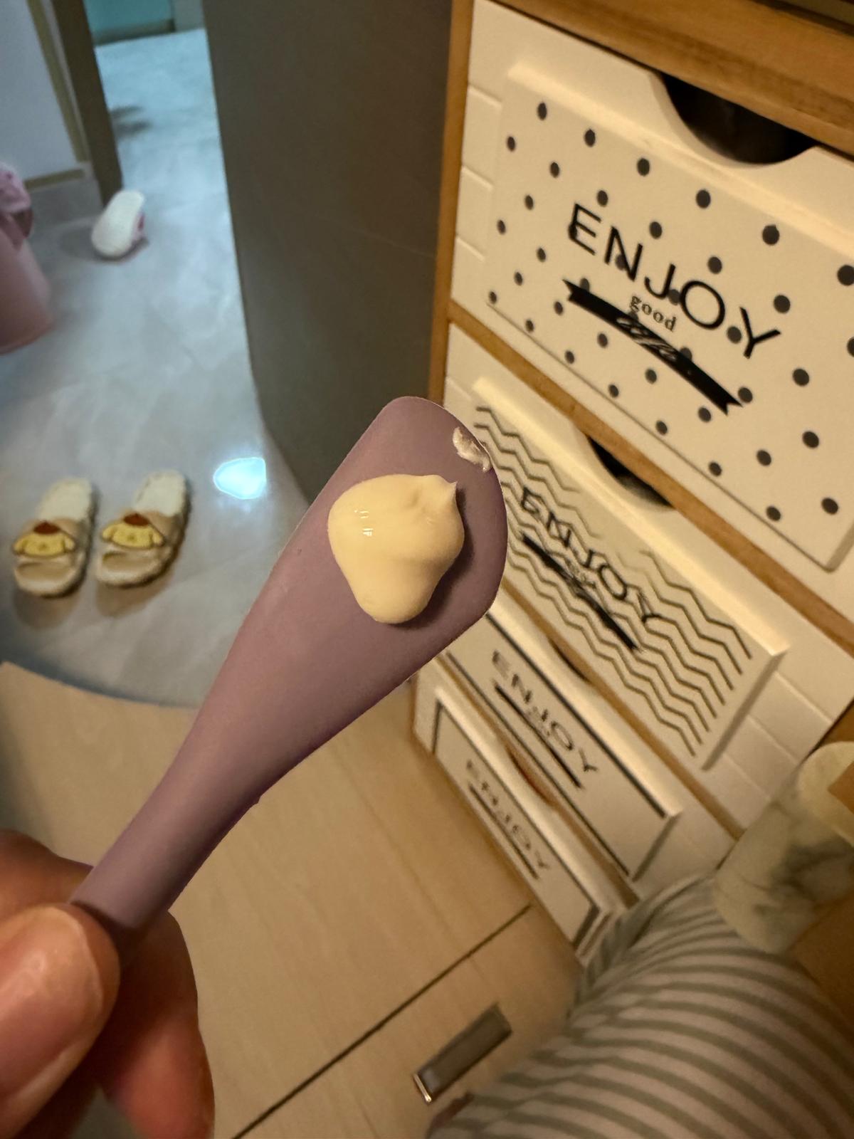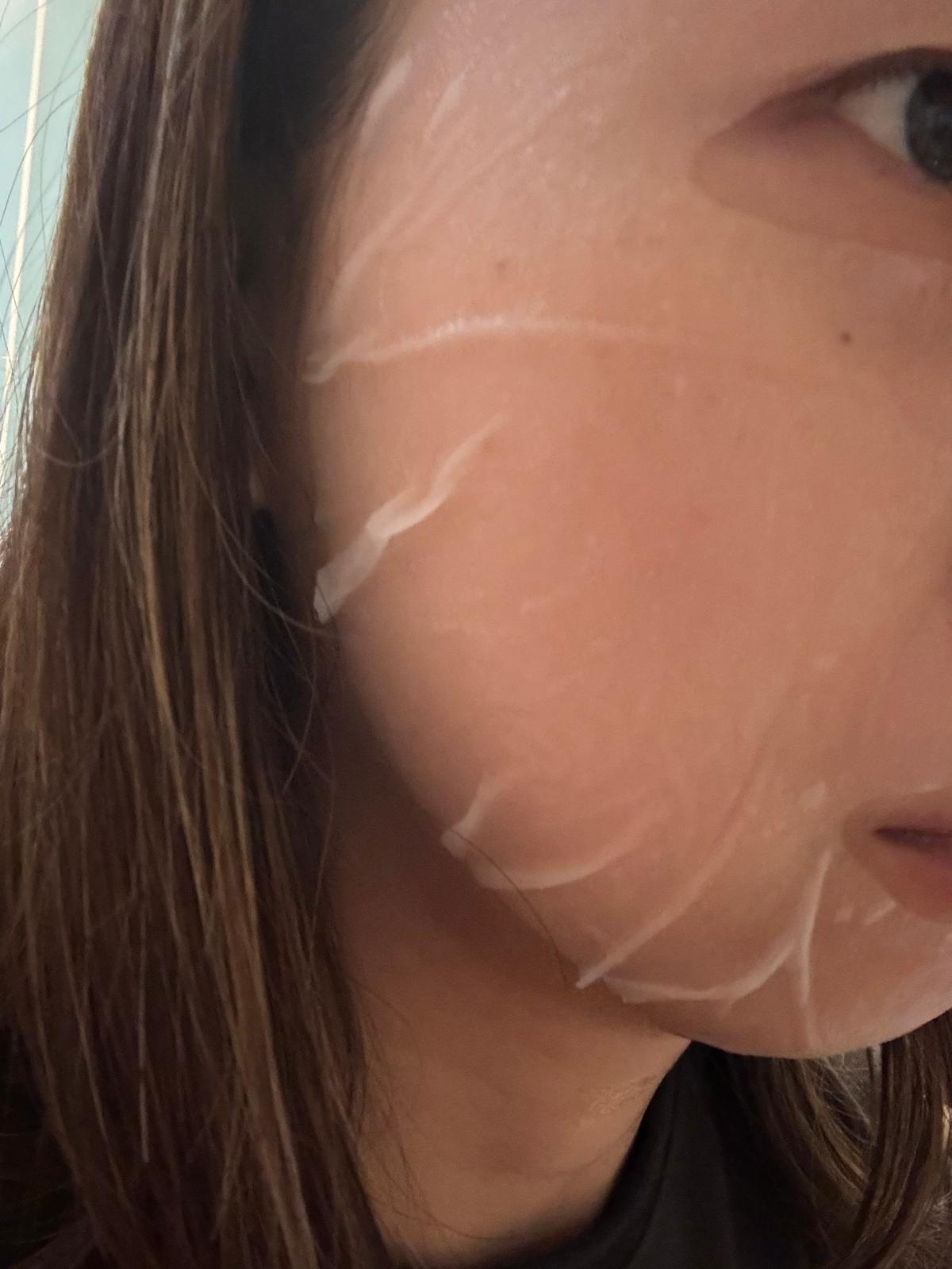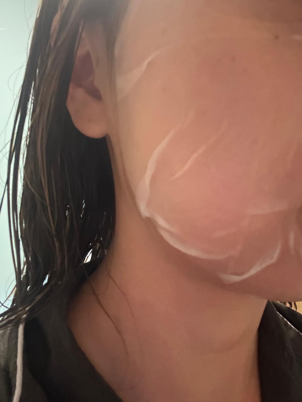 第一次用呢種mask~要自己倒支精華落去盒cream入面撈勻黎用,咁就可以確保支精華係最新鮮既情況下使用!撈完後變左乳白色,然後將佢均勻地塗上面,就變左透明既膠原蛋白,按指示敷左30分鐘,開始變乾,然後去沖水~