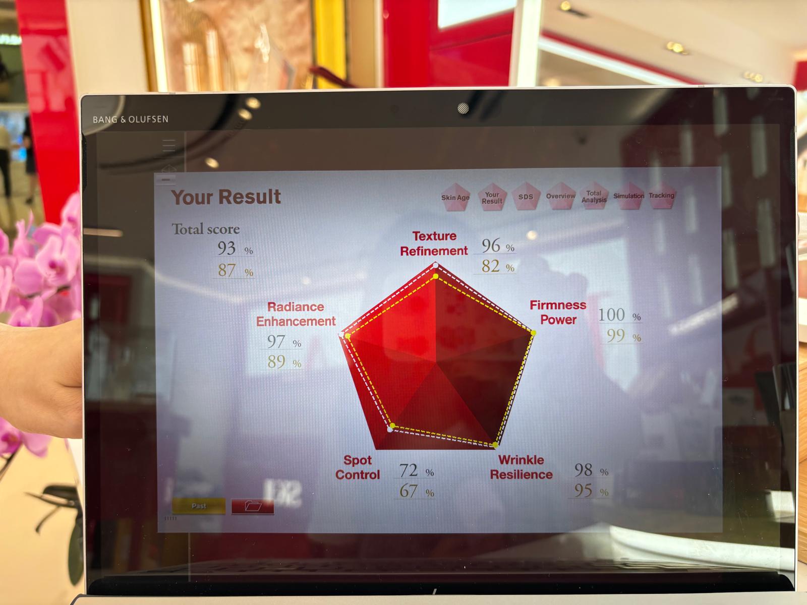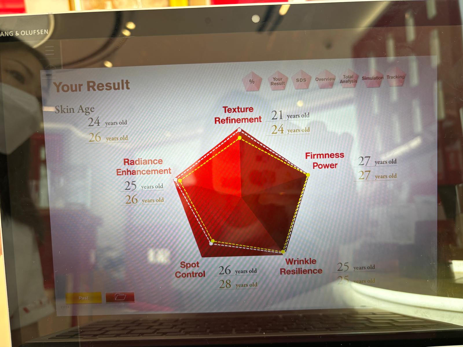 用左大約一個月後返去專門店再做多次皮膚測試,一個月前既肌膚年齡係26歲,今次竟然係24歲!而且係其他範疇包括皮膚質感同埋色斑控制都有顯著改善~~