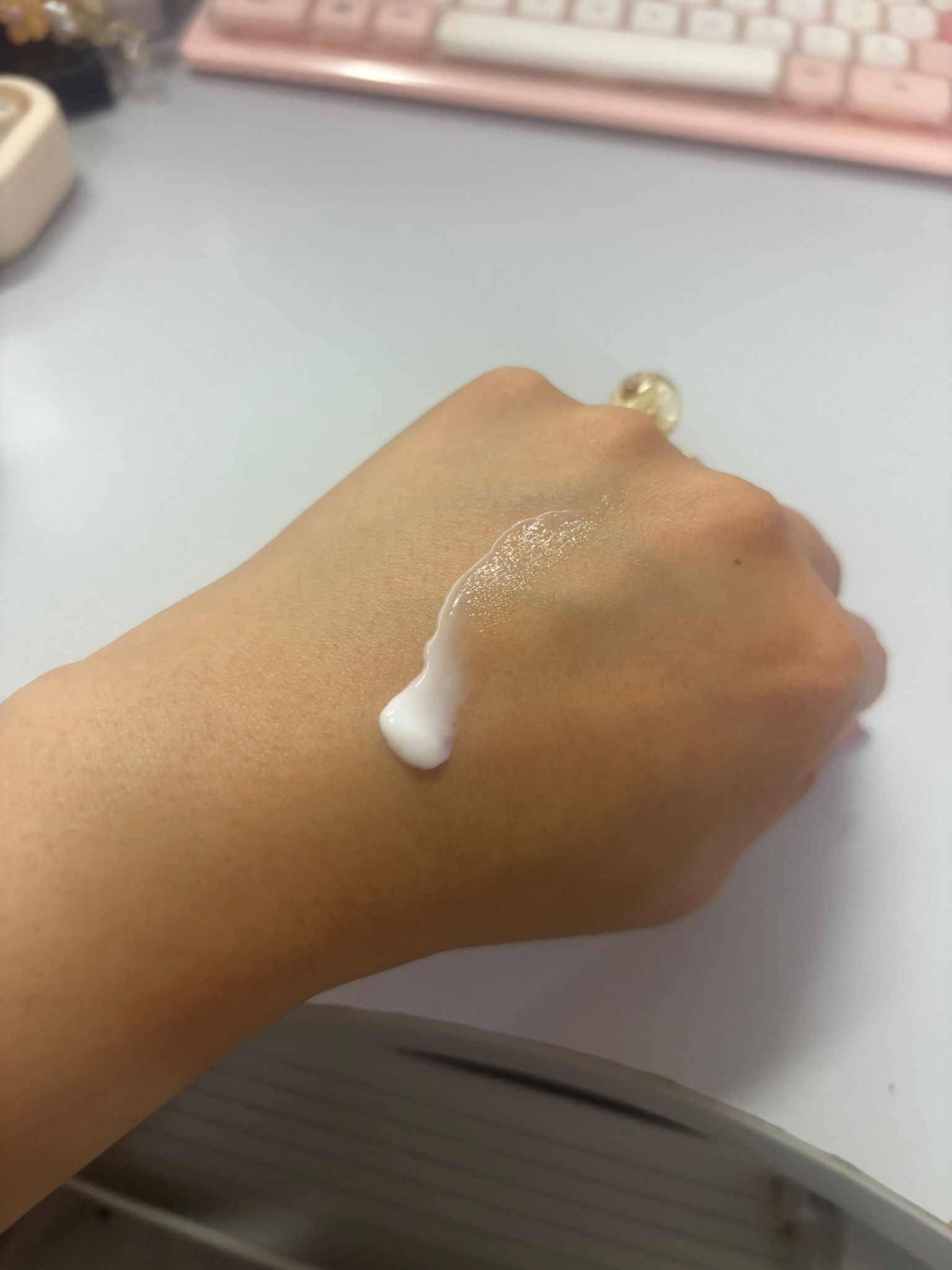 之前用過試用裝,用落都ok,cream狀可能對有d人覺得夏天用會厚身,有香味(個人覺得陣味有d勁),但我用落又ok,冇敏感,面色好似有好左d,用完再上碎粉就出得出口