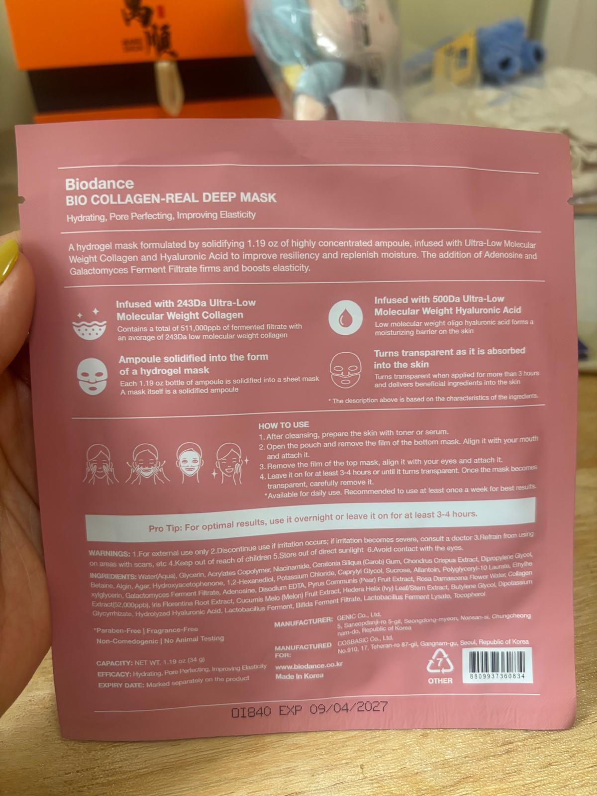 【Biodance Bio Collagen Real Deep Mask 膠原蛋白深層全效面膜】 使用評價