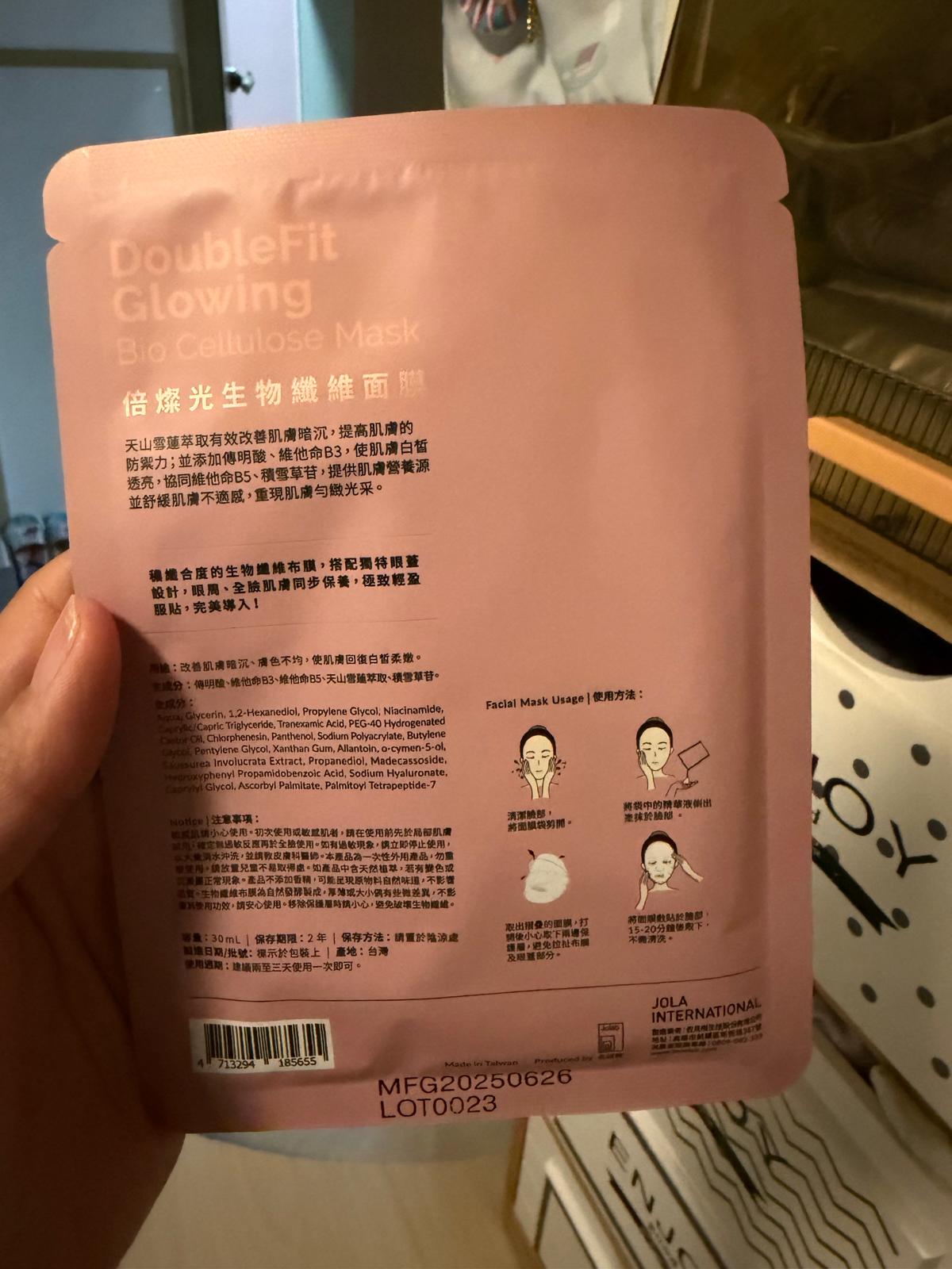 【提提研 Double Fit Glowing Bio Cellulose Mask 倍燦光DoubleFit生物纖維面膜】 使用評價