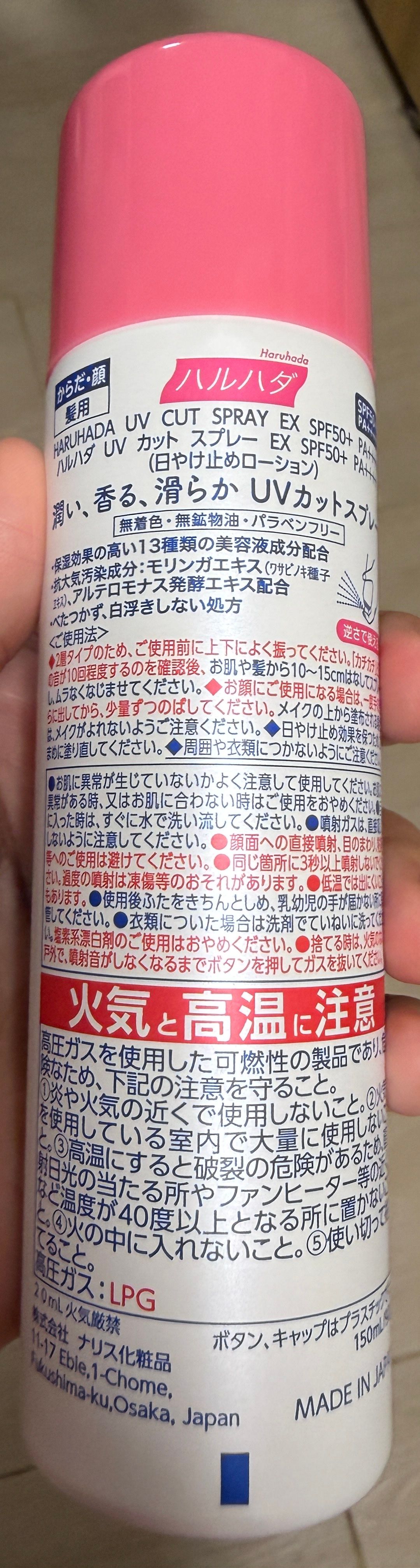 Haruhada UV Cut Spray SPF50+/PA++++ 懶人防曬神器!🌞 噴霧超細膩均勻,一噴即覆蓋臉身不留白、不黏膩💨 含11種美容成分(玻尿酸、膠原蛋白等)加持,防曬同時深層保濕,噴完肌膚水潤清爽不悶熱✨ 冰感降溫超解暑,耐水80分鐘hold住香港濕熱+戶外活動,一整天補噴方便不脫妝🔥 低敏無Paraben、礦物油、人造色素,敏感肌也安心~夏天出街必備,強推回購!💕❄️