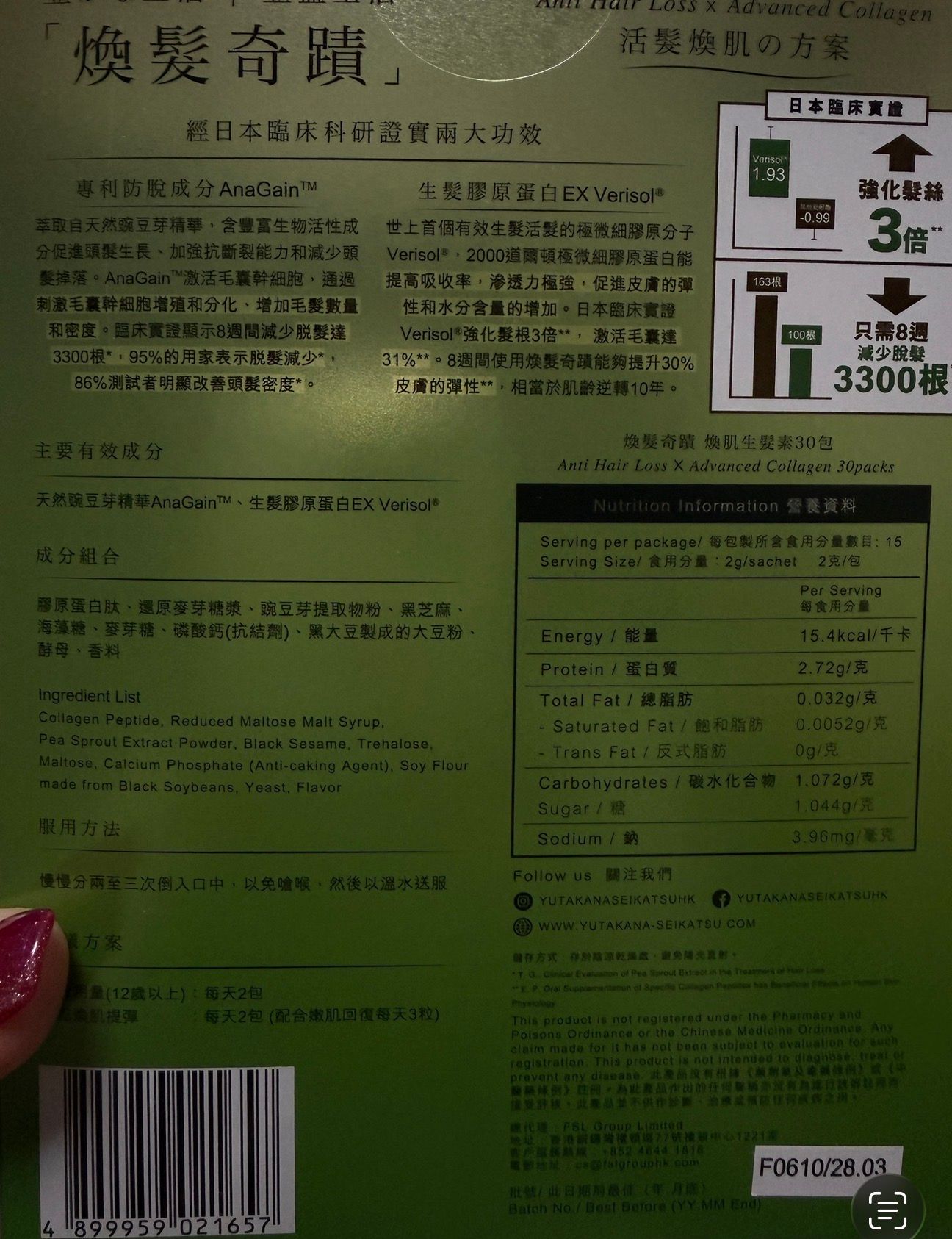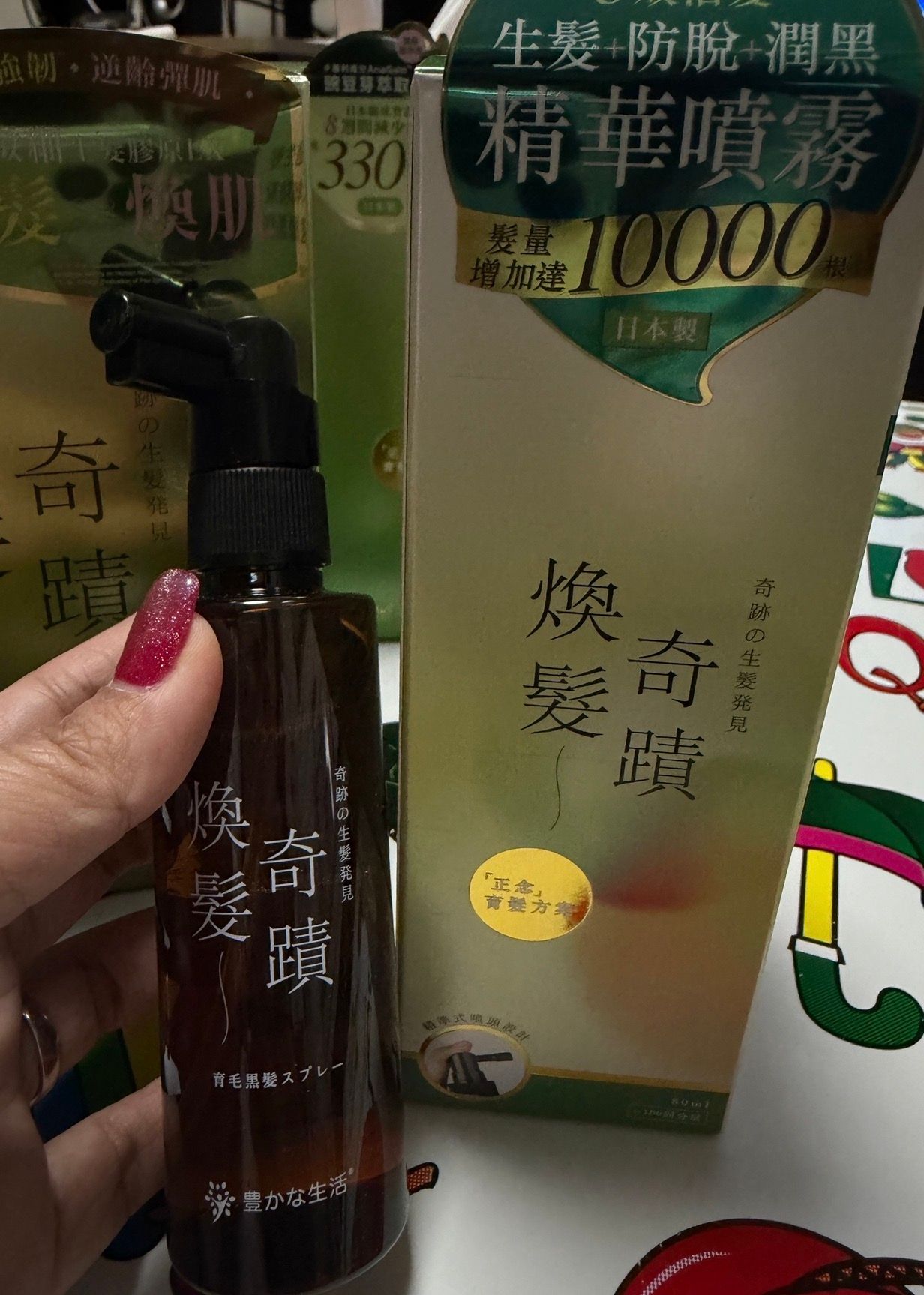 因為生完小朋友容易甩好多頭髮,用咗「煥髮奇蹟」口服補充劑,配合這個「煥髮奇蹟」育毛黑髮噴霧(日本製,80ml),頭髮質地明顯變得比較堅硬、強韌,甩髮真係少咗好多!原本洗頭一把一把掉,現在只剩少少,感覺頭皮健康咗,髮絲更有彈性、光澤提升。噴霧用喺洗頭後薄毛位,2–3泵按摩頭皮,吸收快、無需沖洗,味道清新唔黏膩。連BB毛都開始長粗,髮量看起來回復咗啲。產後脫髮本來好驚,但內服+外噴雙管齊下,幾個月後掉髮大幅減少,頭髮變濃密有光。天然成分無激素,適合哺乳期後用,無副作用。臨床數據同用家分享都match,產後媽媽真係救星!建議持續用2–3個月以上,效果更穩