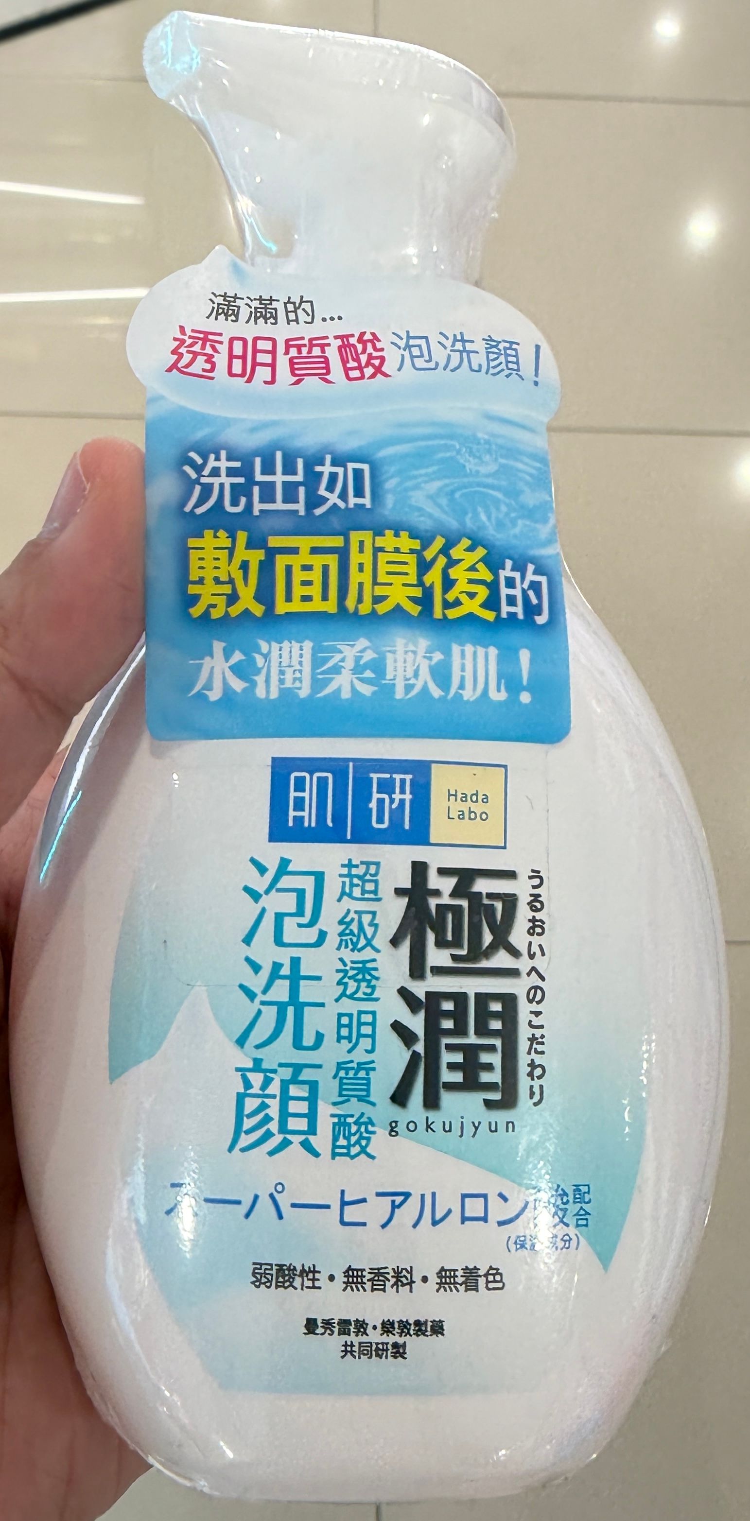 Hada Labo 肌研極潤潔面泡沫,再三購買,泡沫超綿密細緻,按泵即出,輕輕按摩就夠!含超級HA + HPT玻尿酸,洗完即時潔淨不緊繃,皮膚摸落水潤柔軟,唔會乾澀拉扯。無香無酒精,弱酸性溫和,敏感乾肌/混合肌都fit,夏天懶人卸淡妝或日常清潔一流,CP值高,極潤系列打底神器,強推!