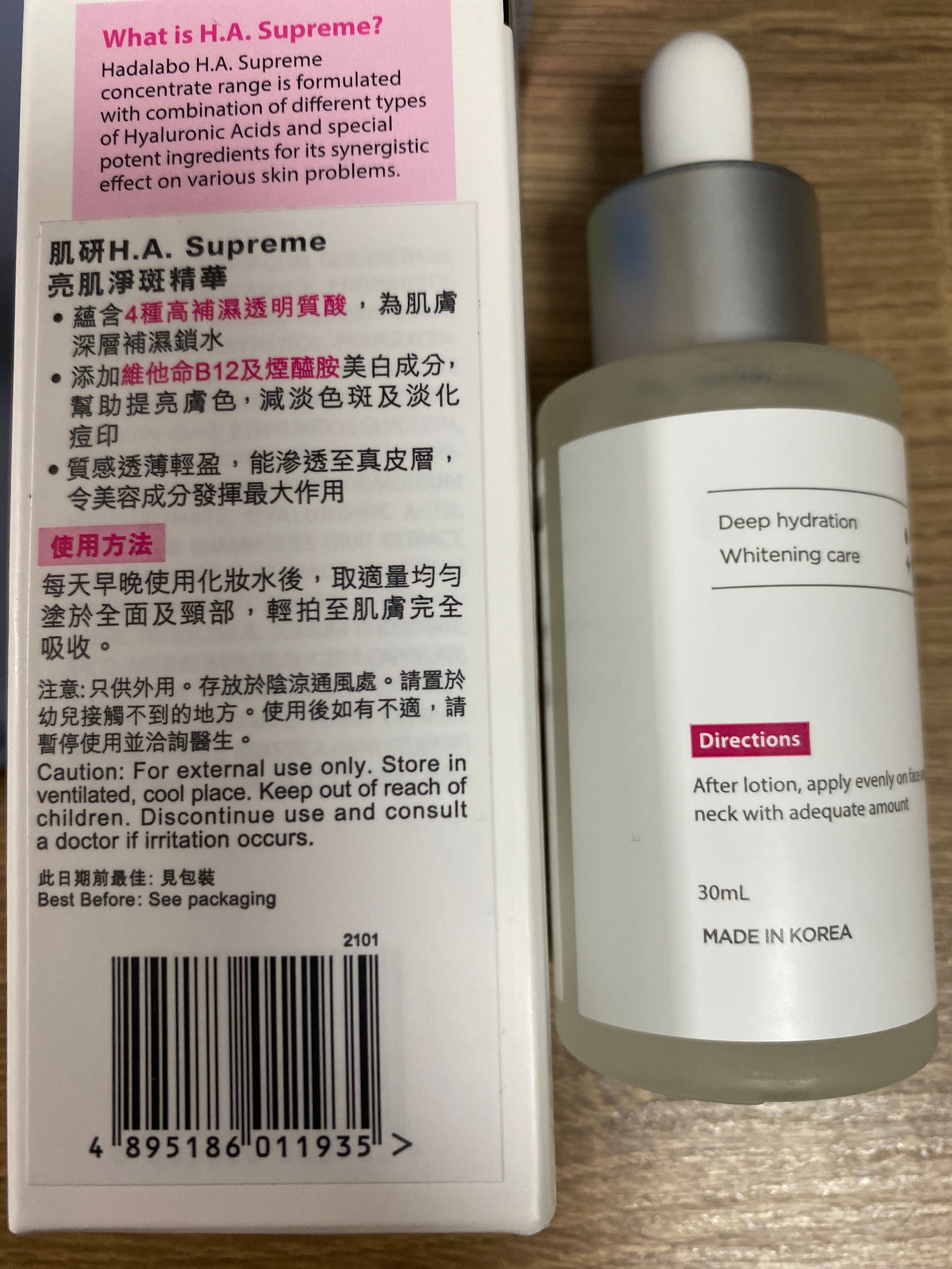 開左支H.A. Supreme亮肌淨斑精華,查完爽膚水之後茶肌研呢支精華,好易推同好滋潤,查完之後感覺肌膚有彈性,同埋面上既黑色素淡晒,亦都均勻返