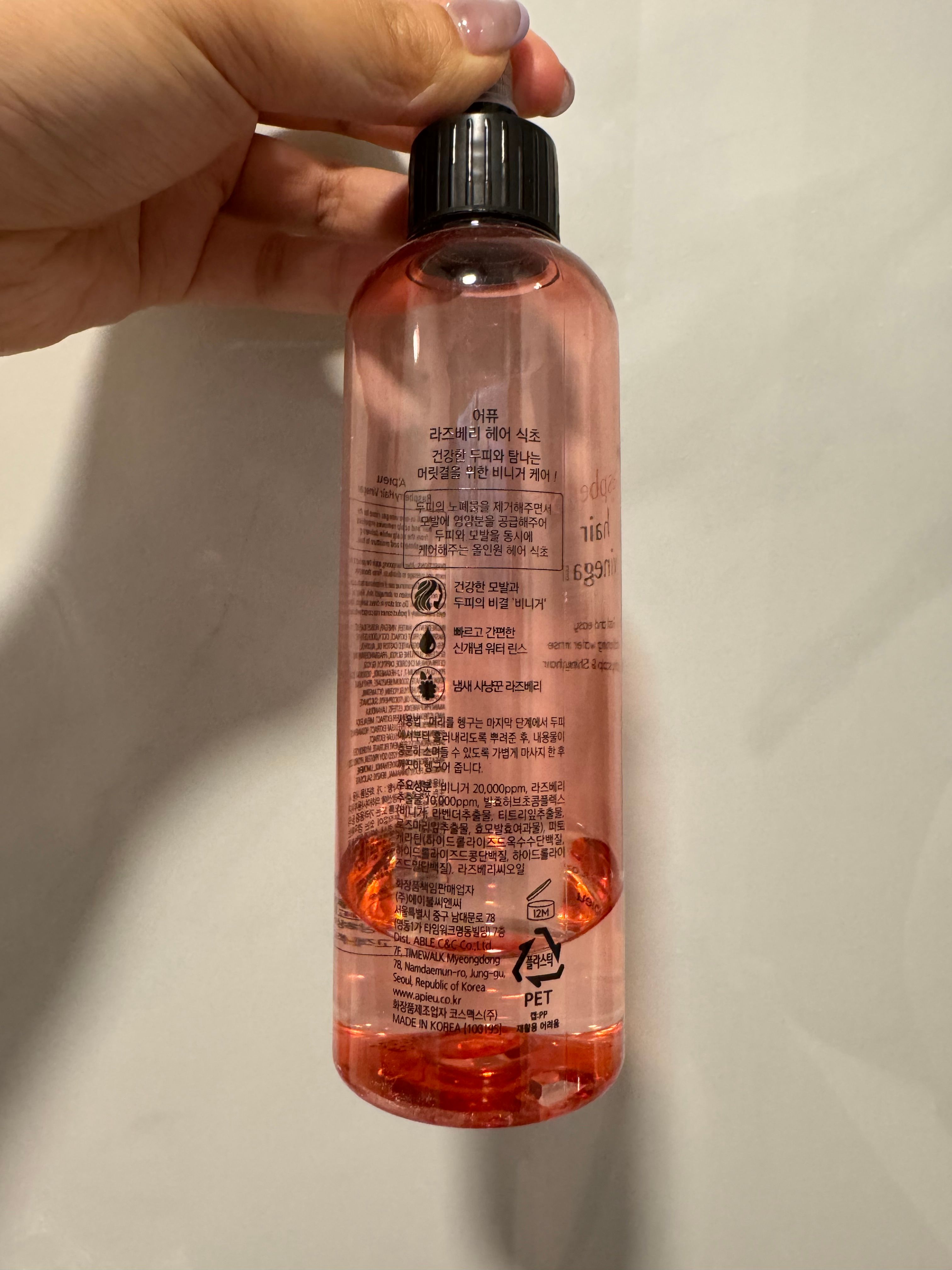 【A'Pieu Raspberry Hair Vinegar 莓果覆盆子護髮醋】 使用評價