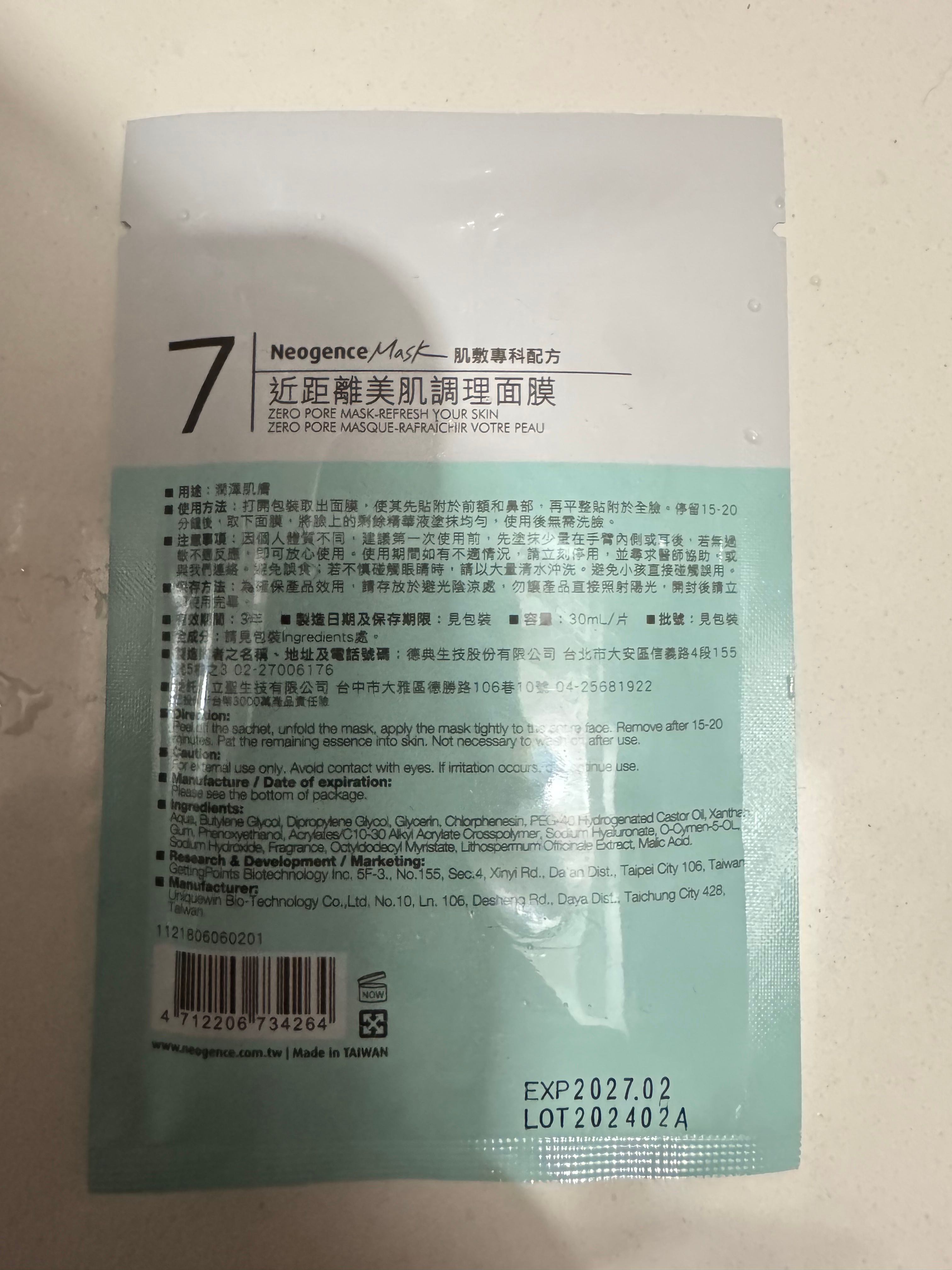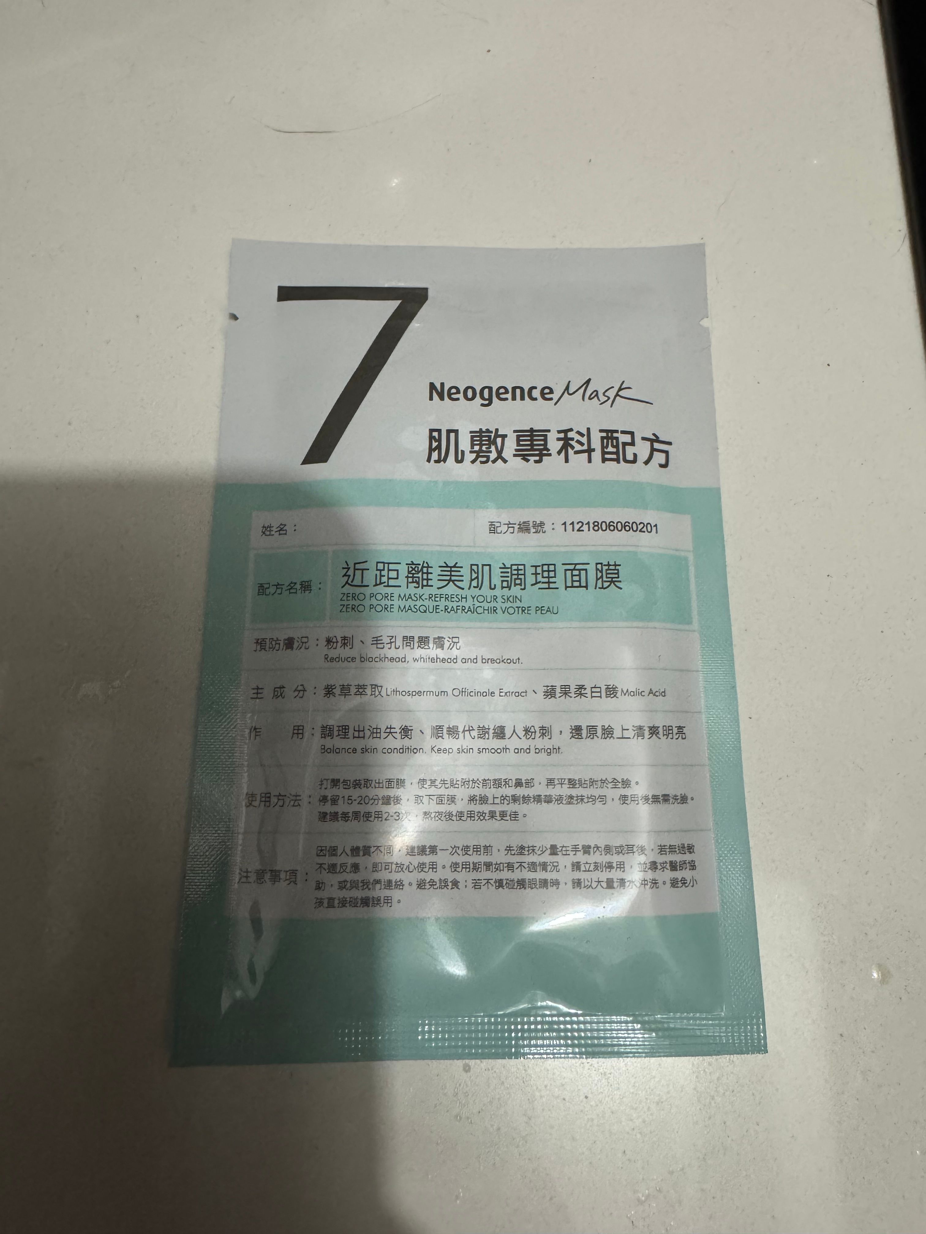 【Neogence Zero Pore Mask 近距離美肌調理面膜】 使用評價