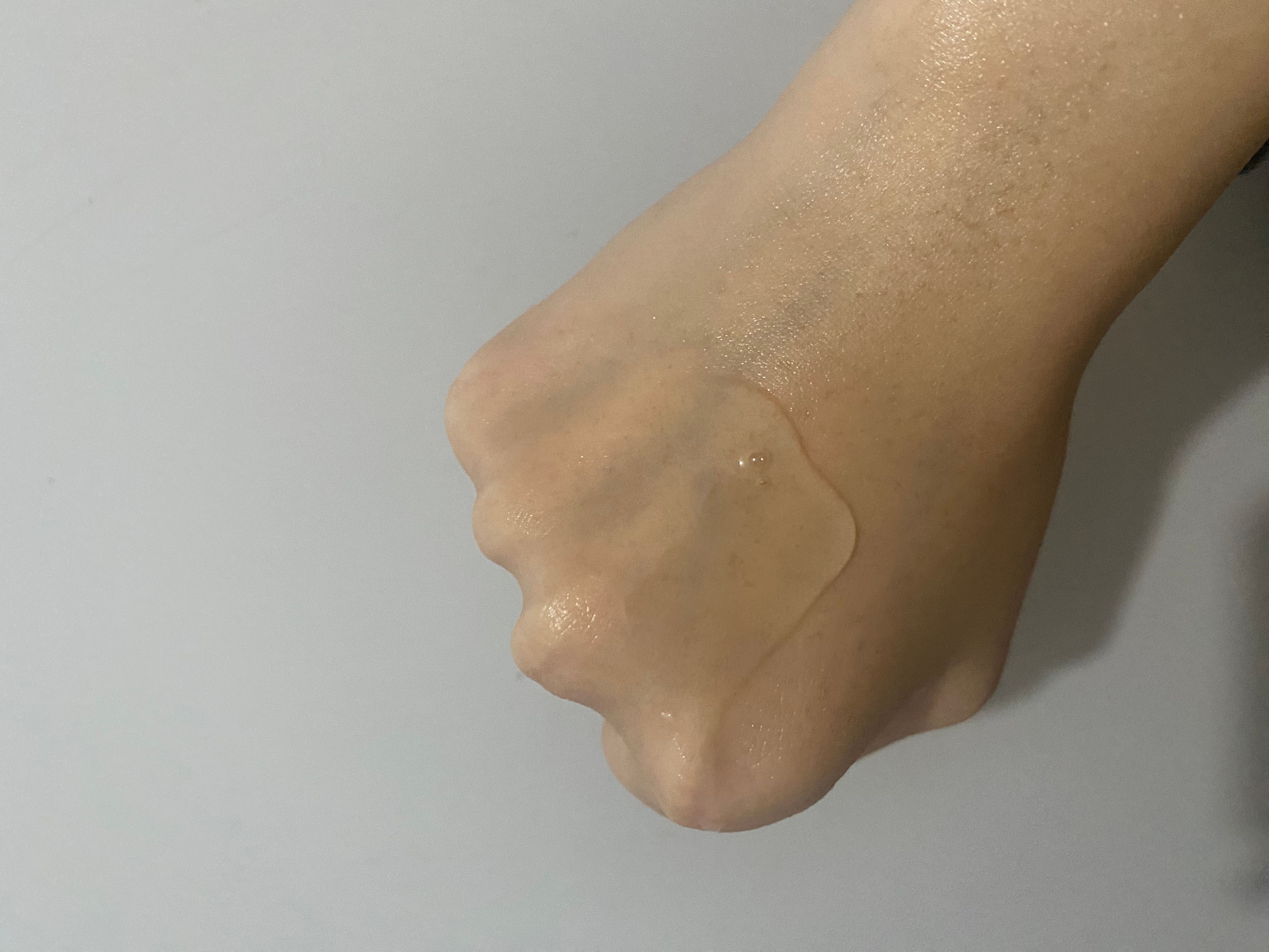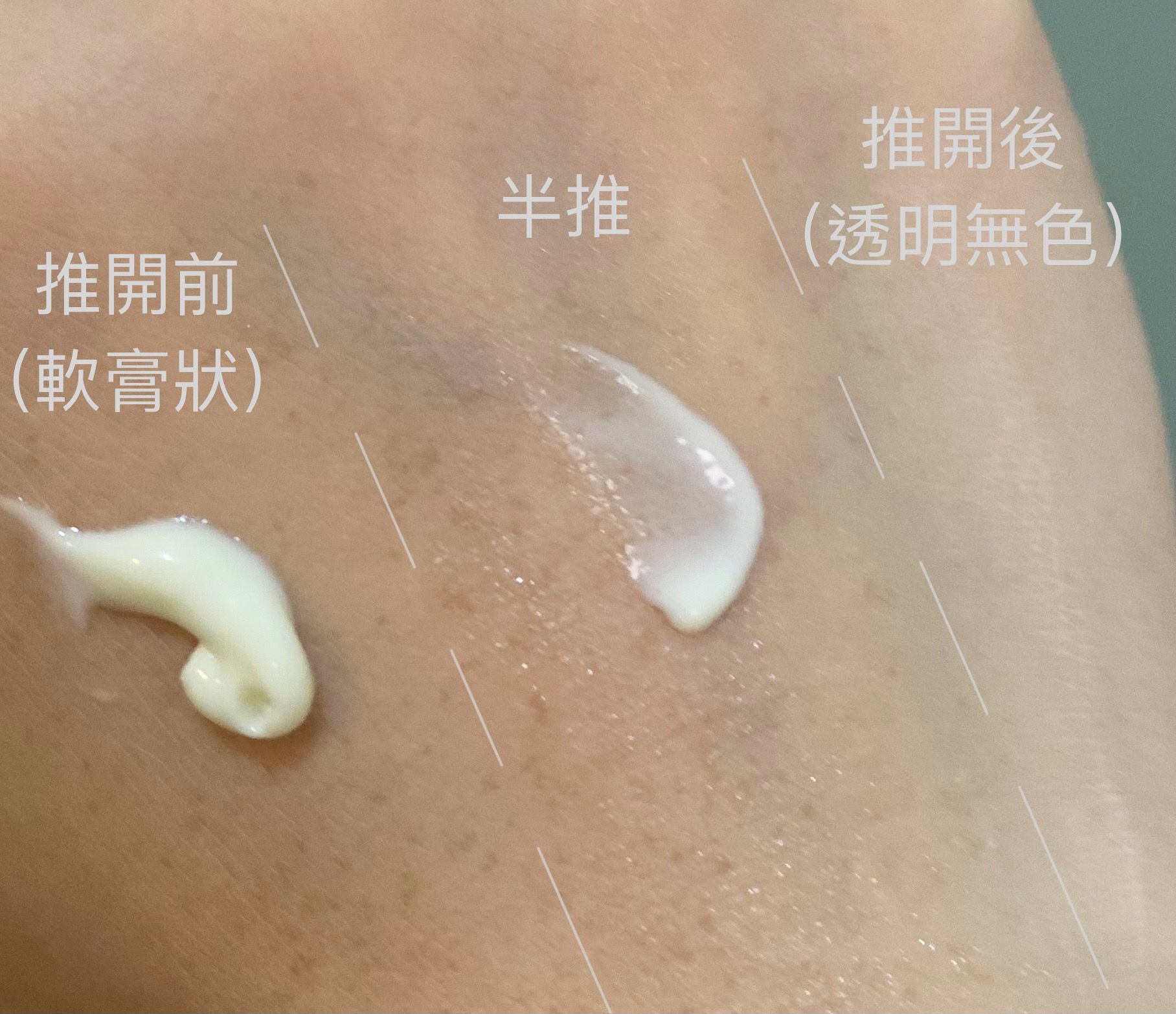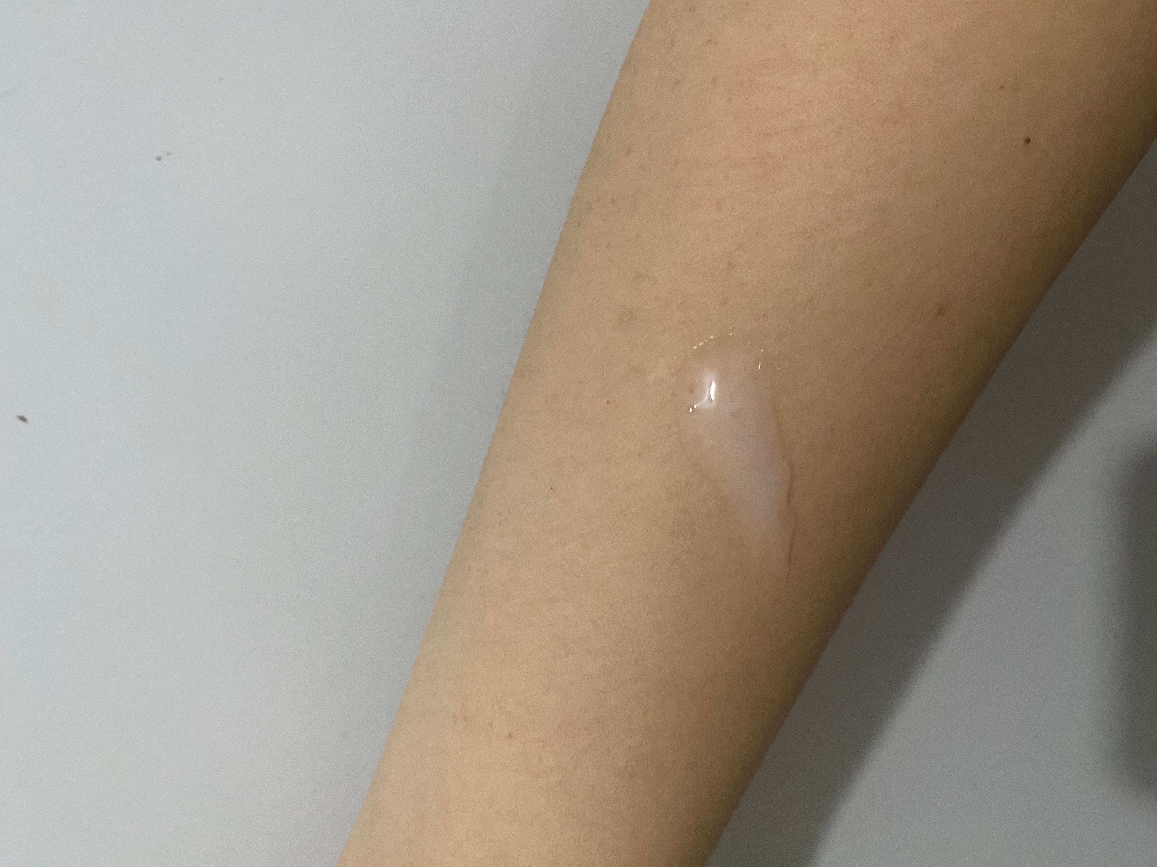🌟🌟圖三:塗勻後是透明無色,有輕微光澤感,非常適合塗在手腳頸部皮膚