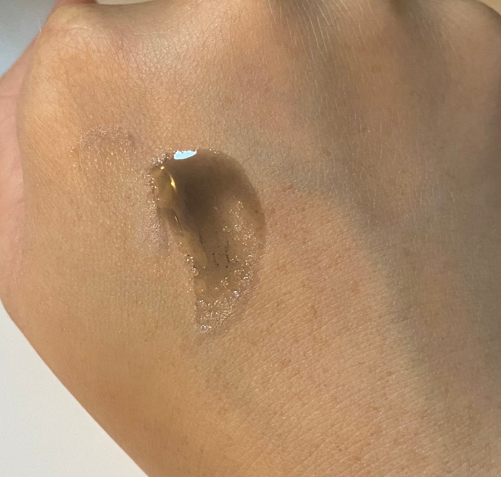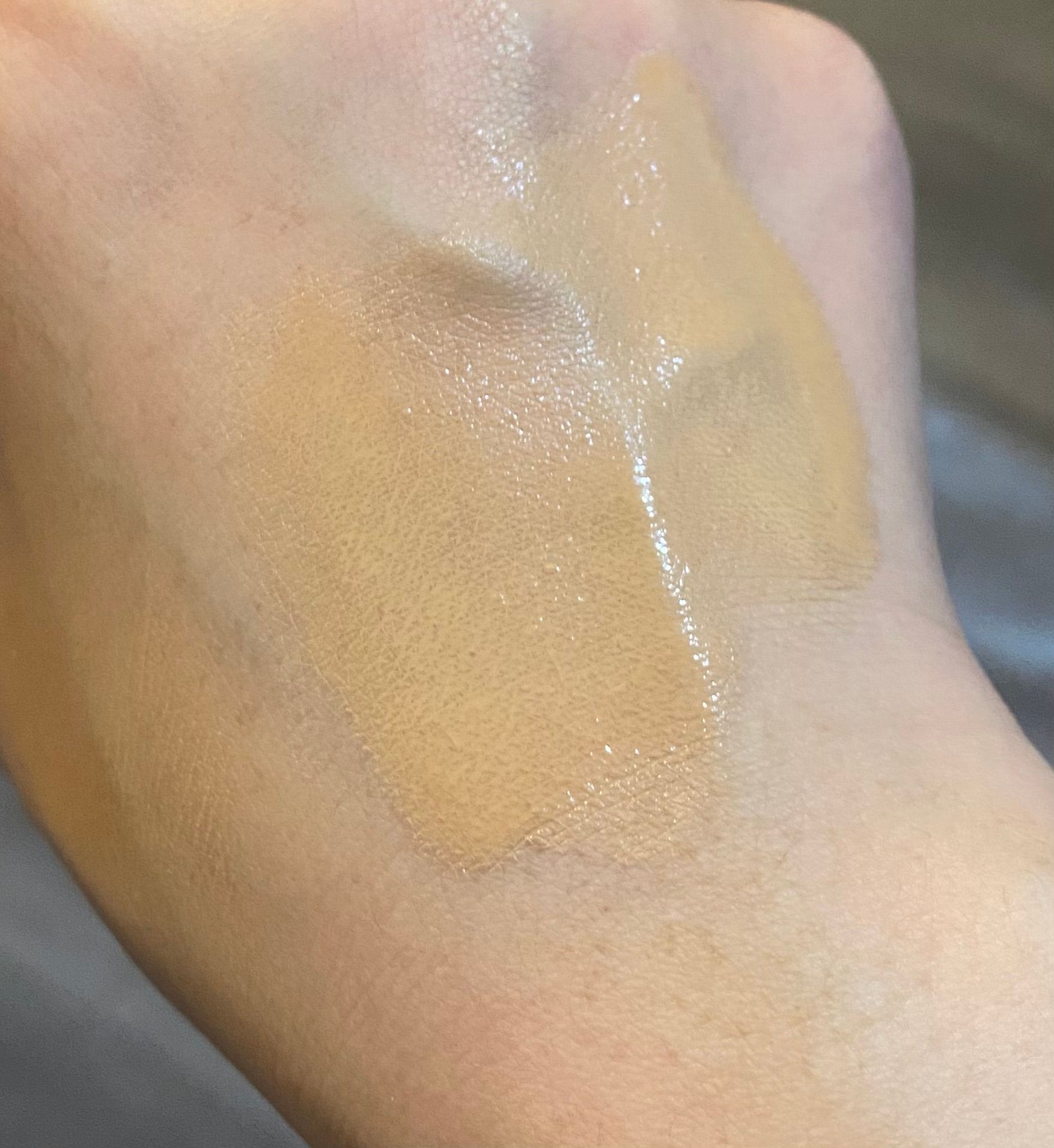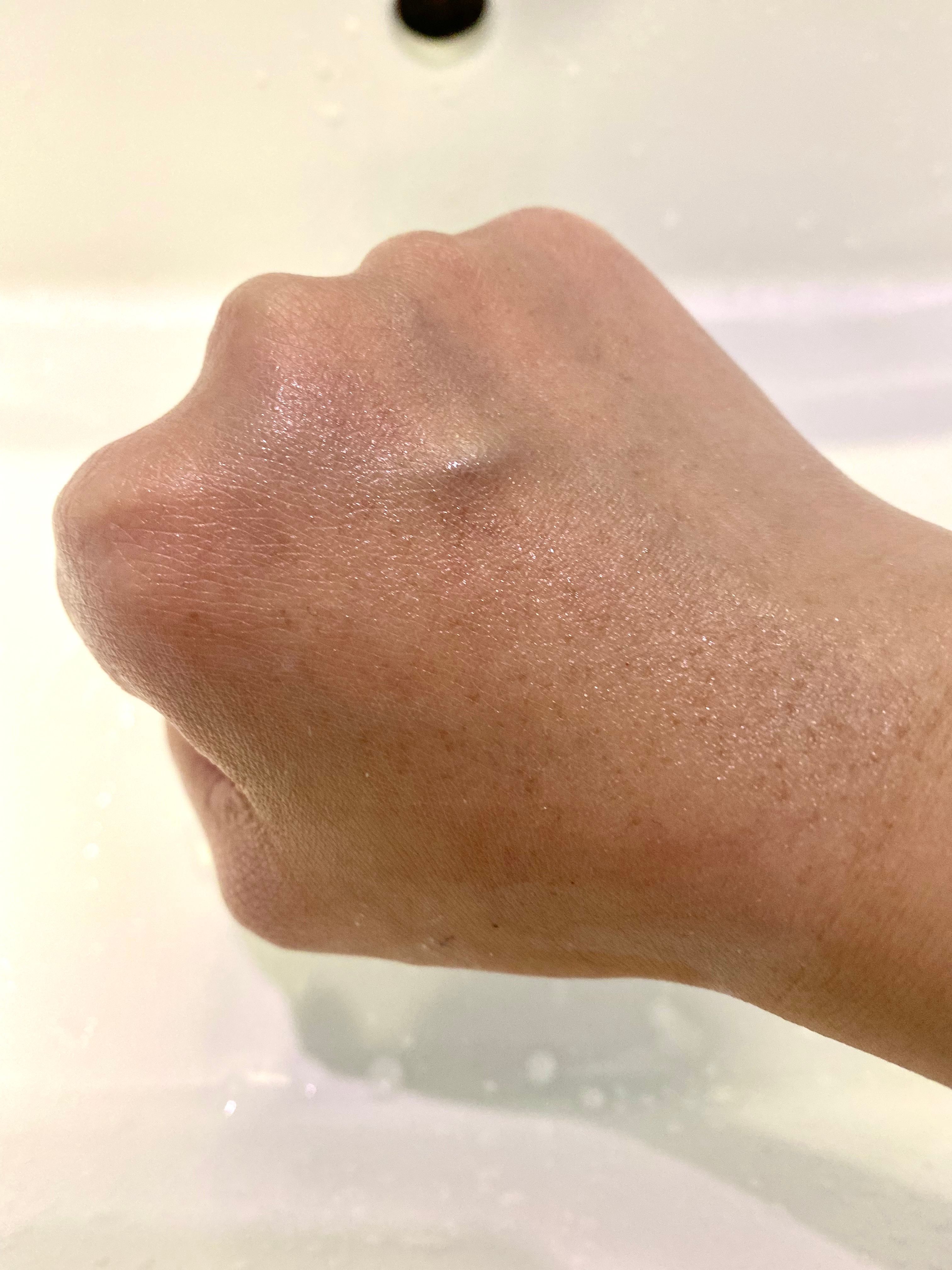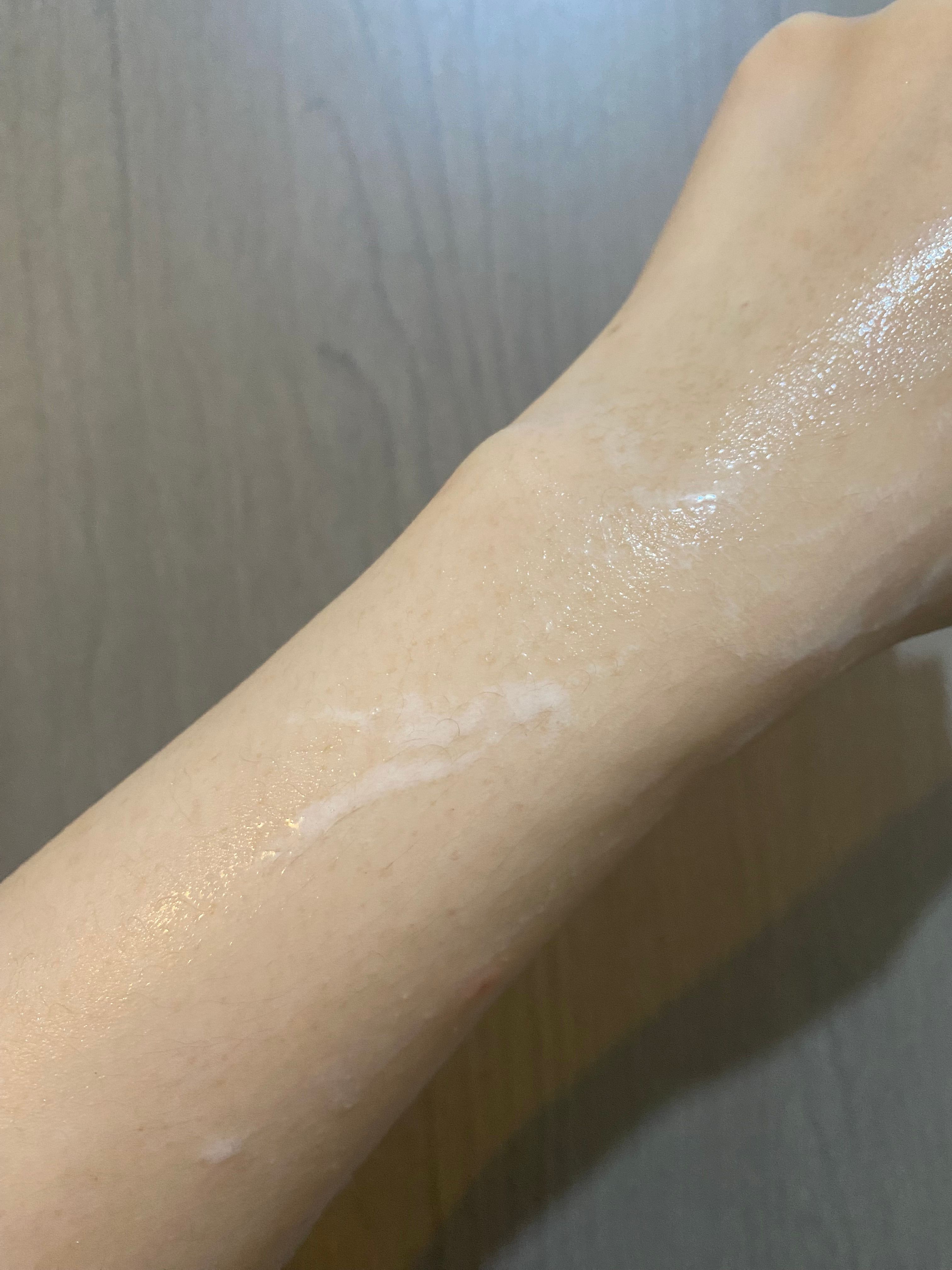 🌟🌟圖三:塗勻後是透明無色,有輕微光澤感,非常適合塗在手腳頸部皮膚