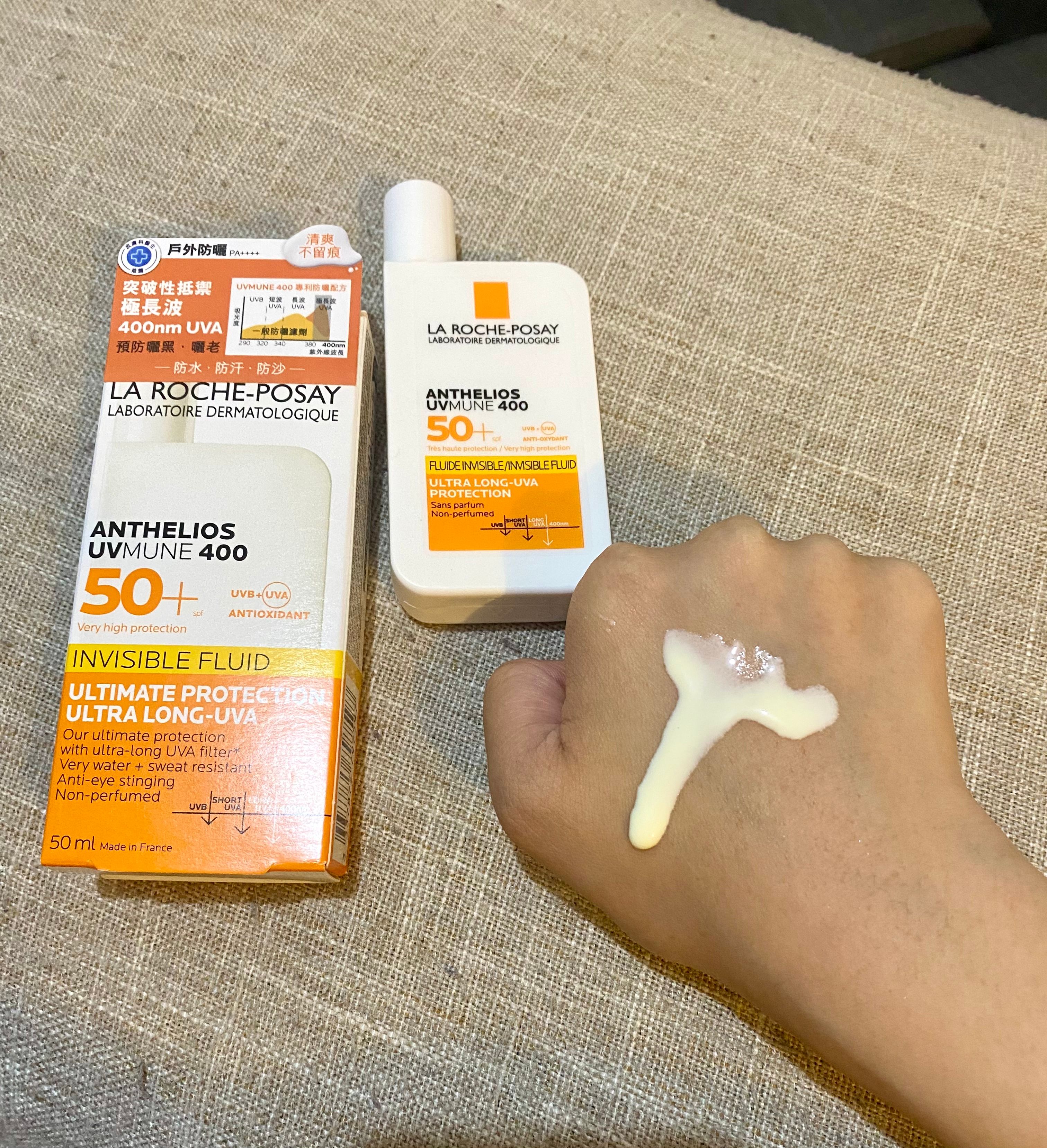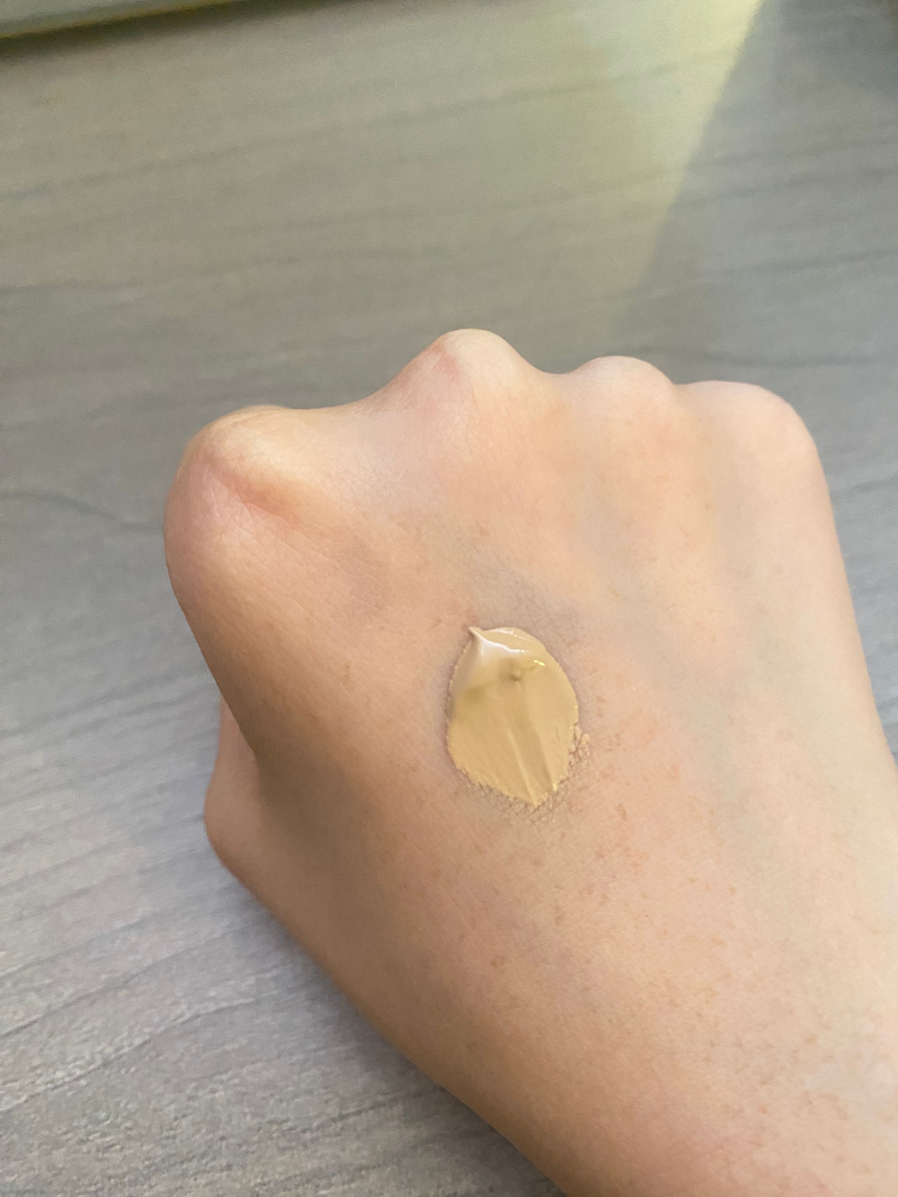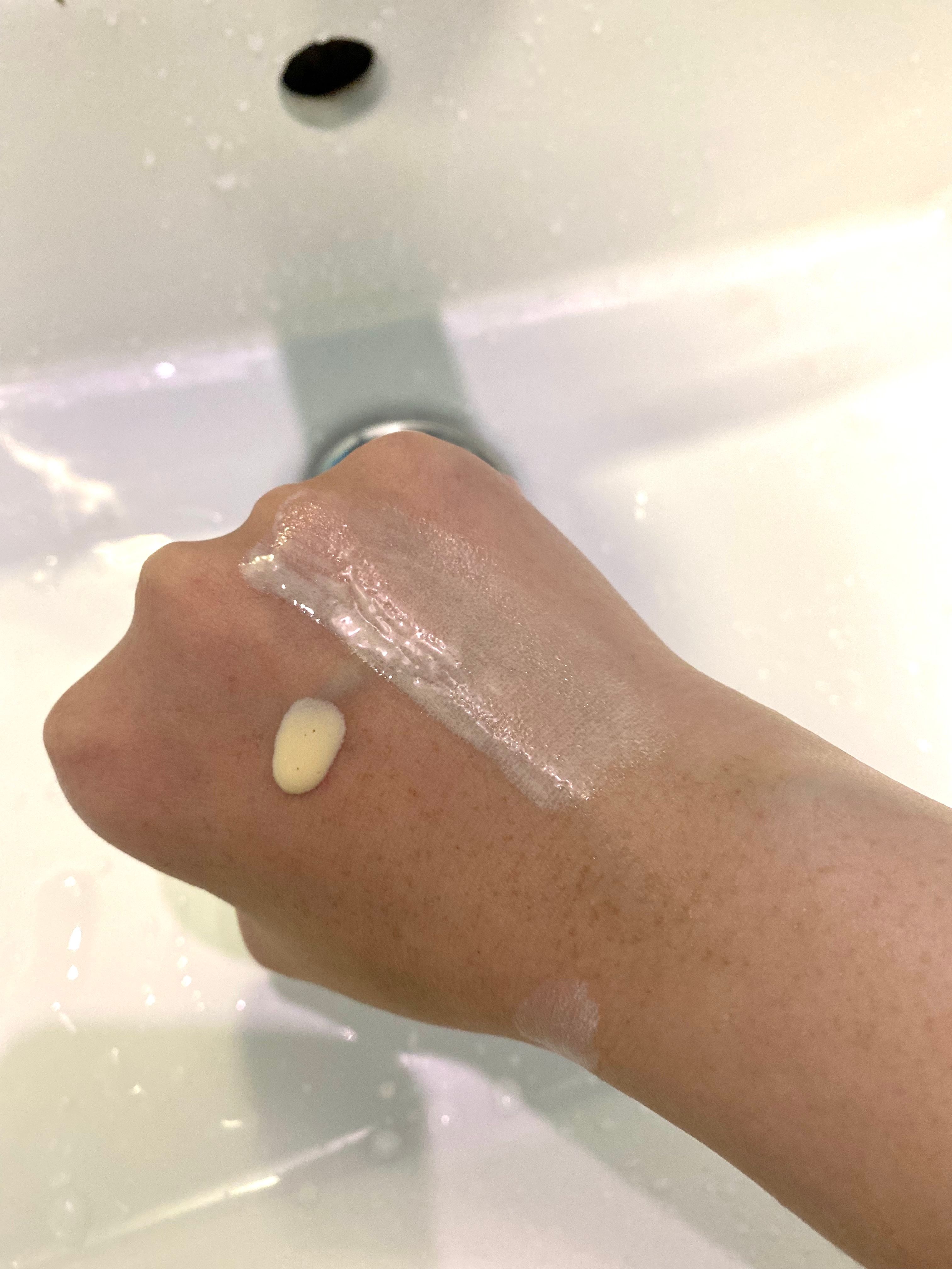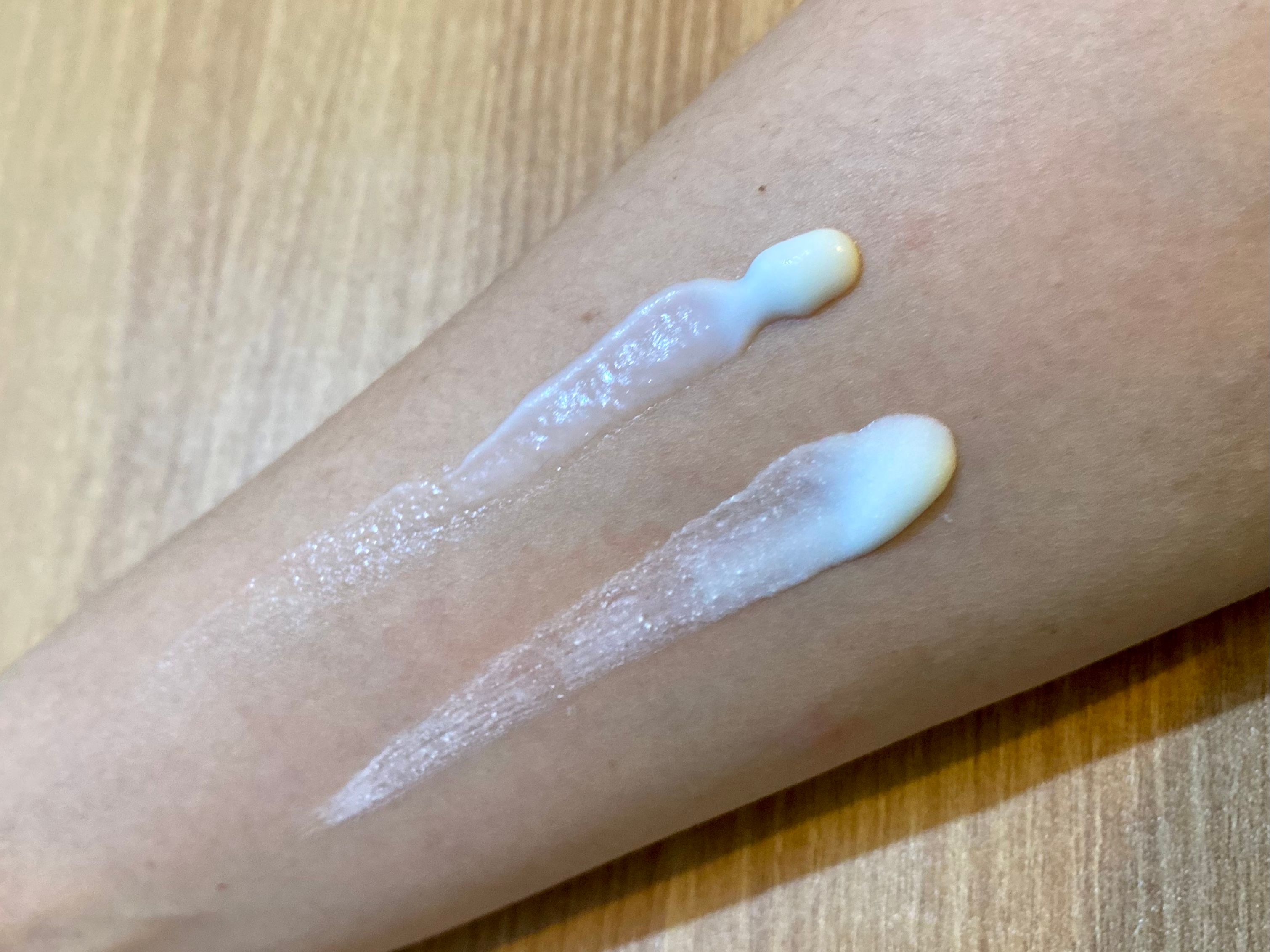🌟🌟圖二:需要搖勻才倒出來,防曬乳液是淡黃色的,旁邊是推開的狀態,可見是呈液體狀的
