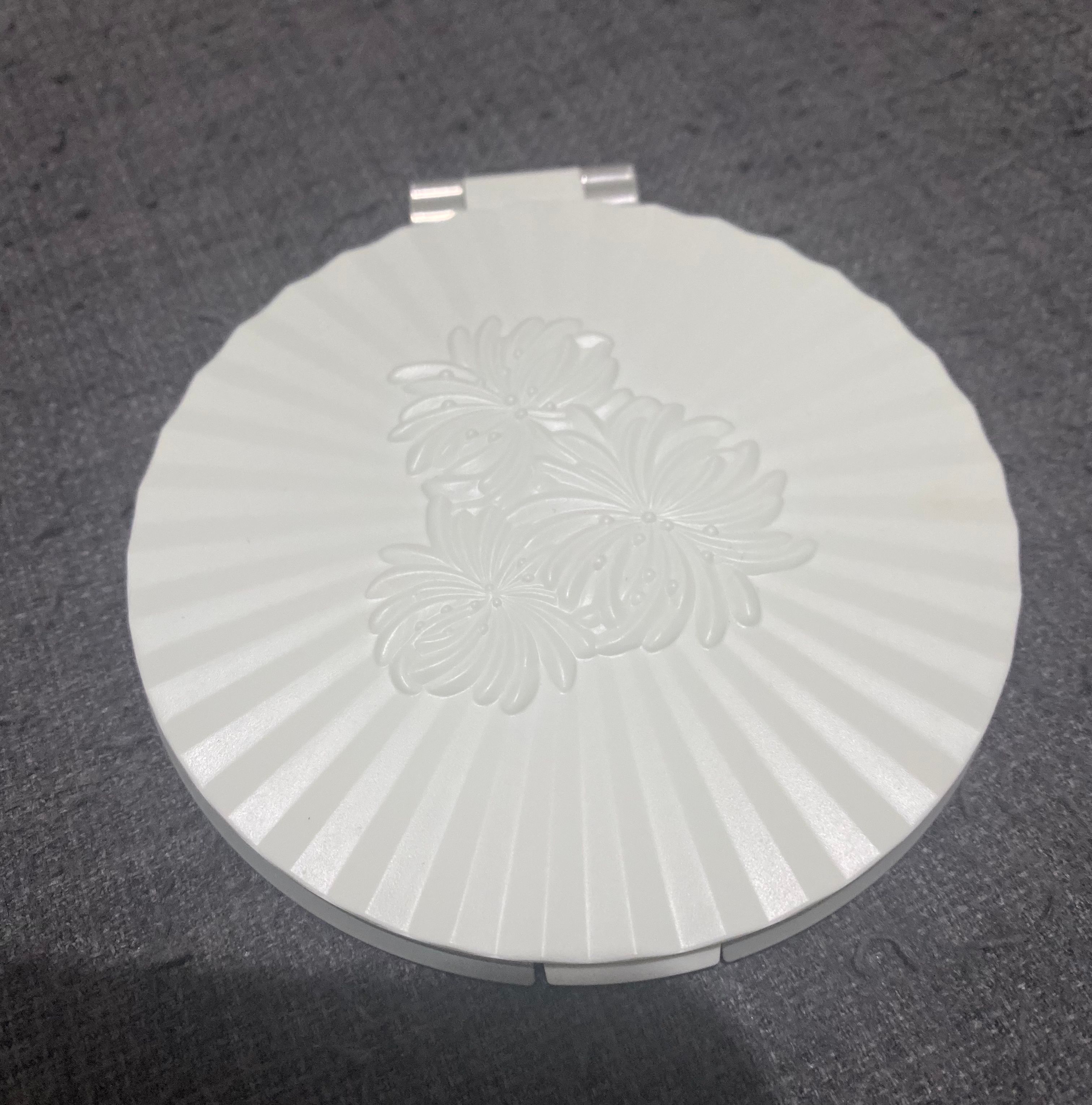🌟鏡盒表面是象牙白色,立體橙花,向內集中的貝殼紋,色調簡約中又帶有美感