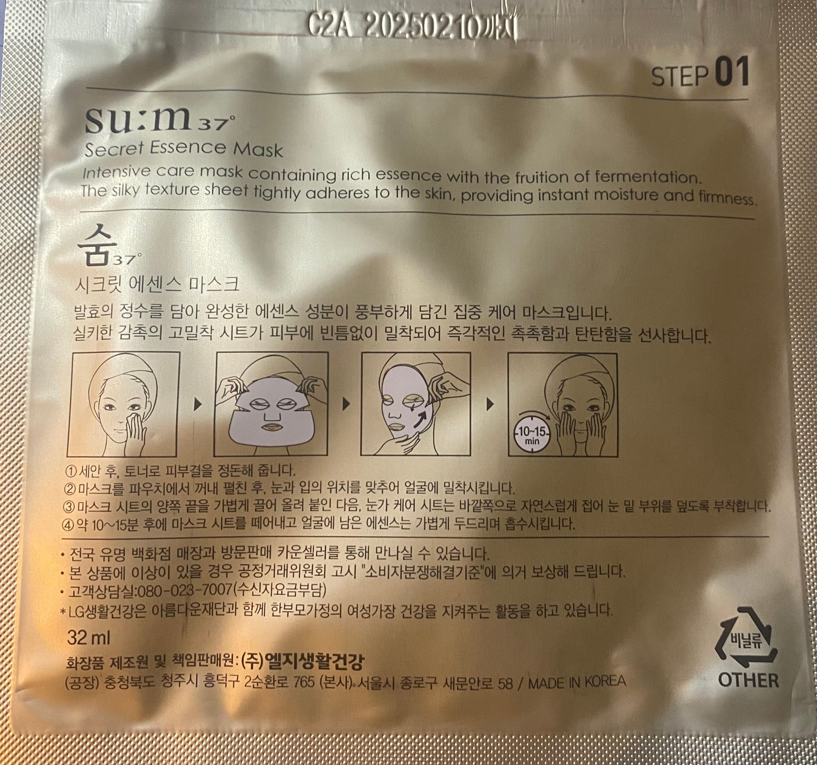 精華量超級多,第一片用完時會偏油,之後就正常返,面膜紙厚薄適中,持續用毛孔有細左少少。平價面膜來說呢個性價比好高,會想試埋同系列的其他面膜👍🏻