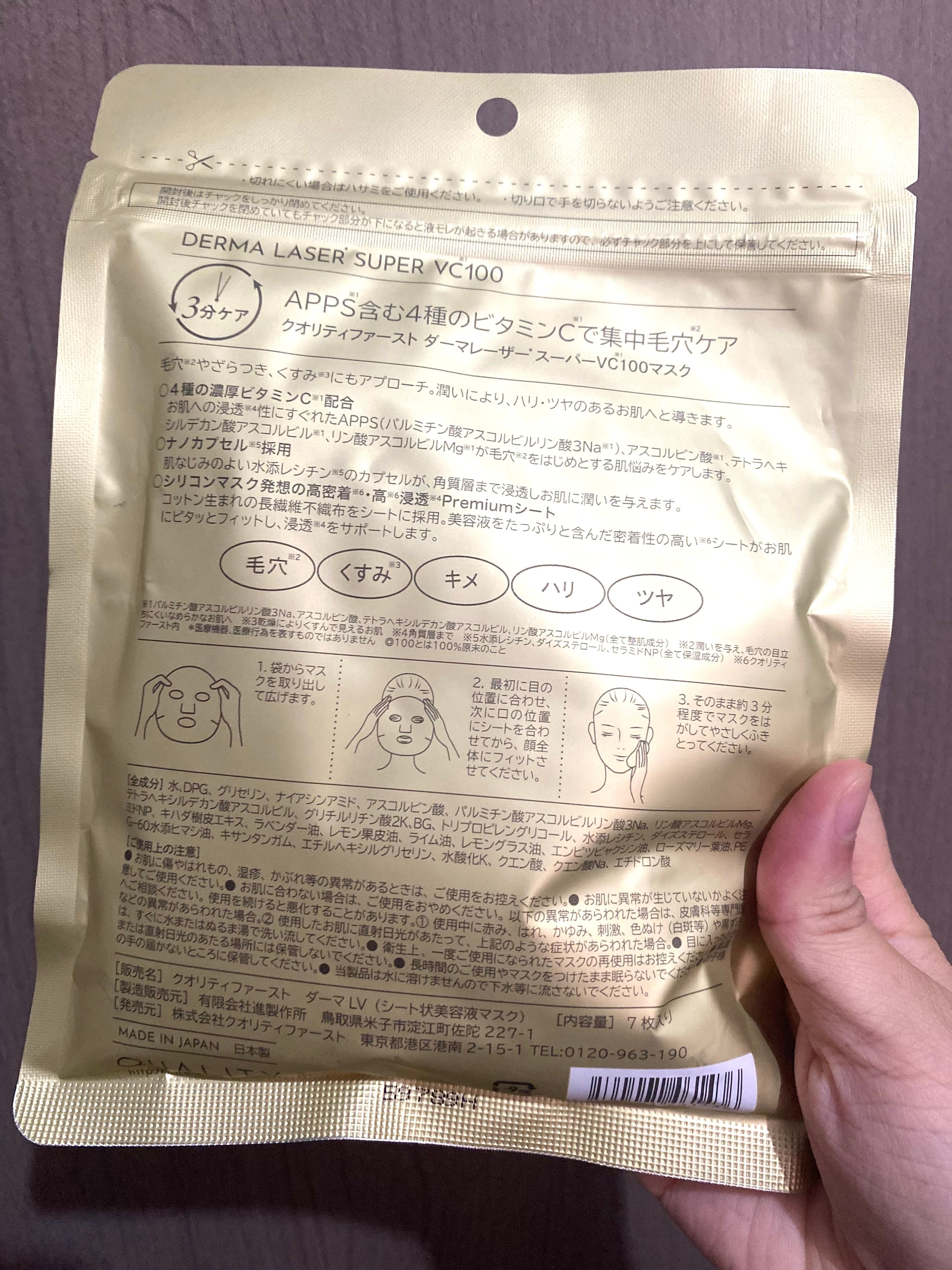 【Quality First Derma Laser Super VC100 Mask 激光速效系列透亮4重維他命C面膜】 使用評價