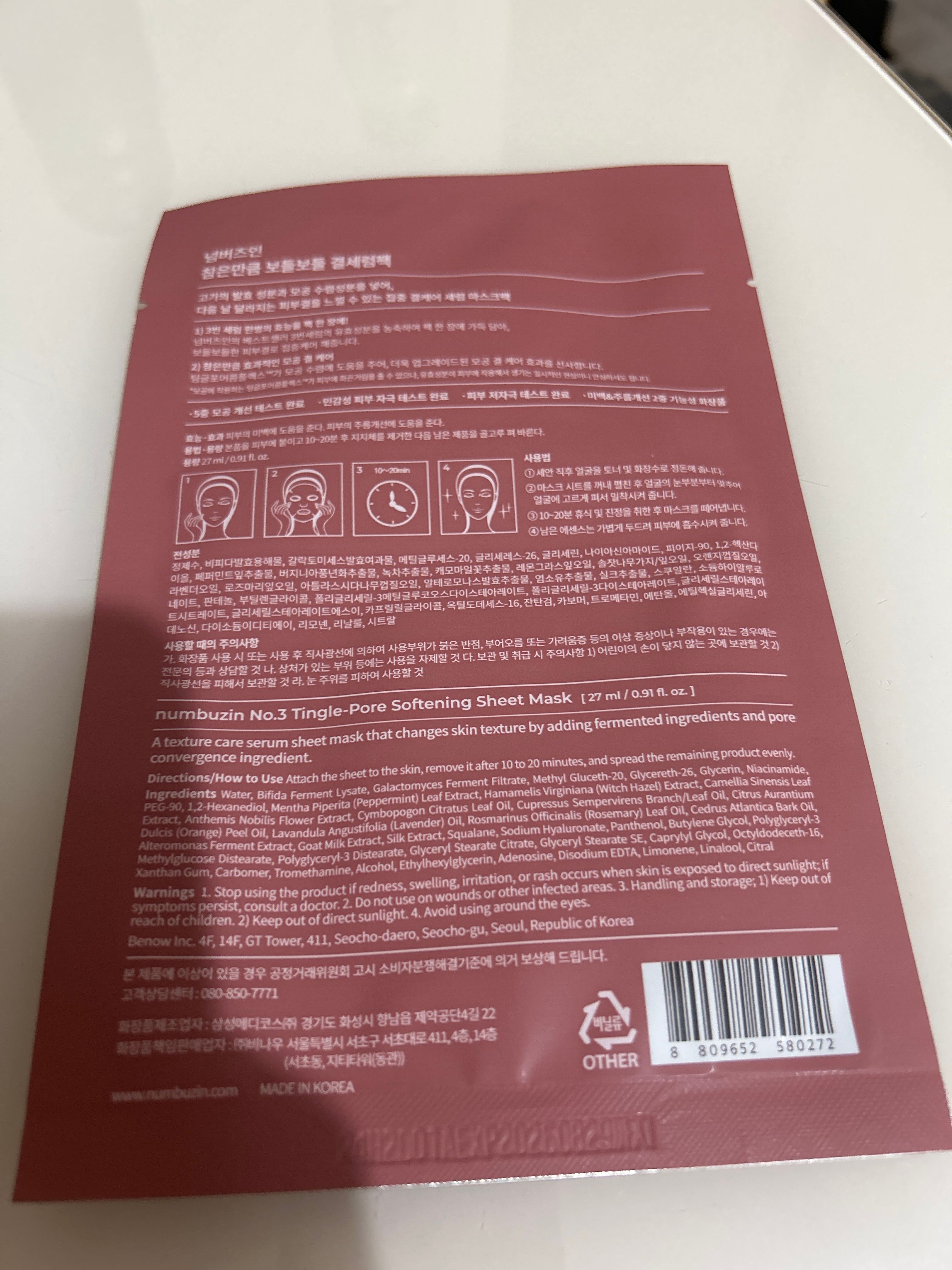 No. 3 Tingle Pore Softening Sheet Mask