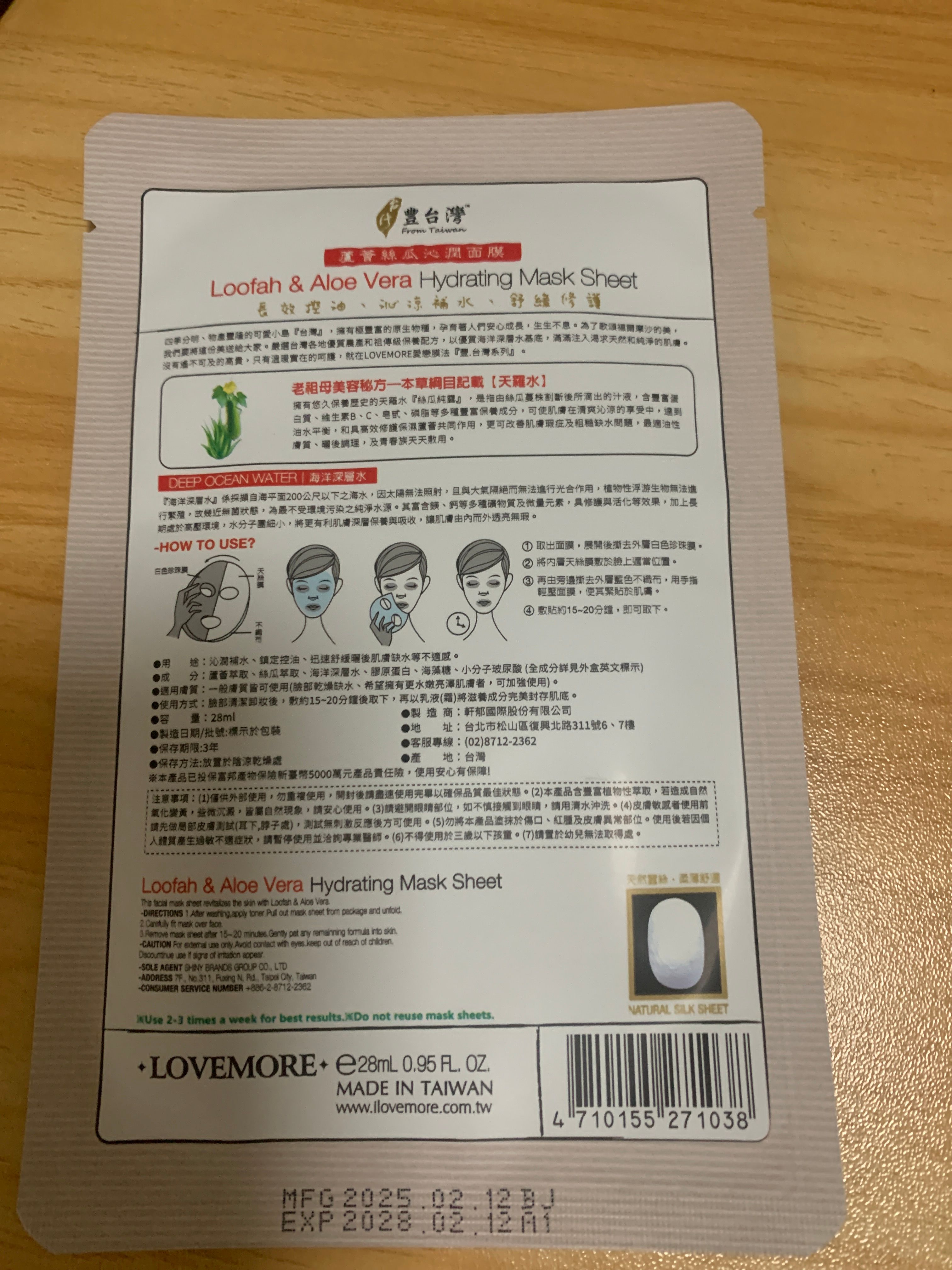 蘆薈絲瓜沁潤蠶絲面膜