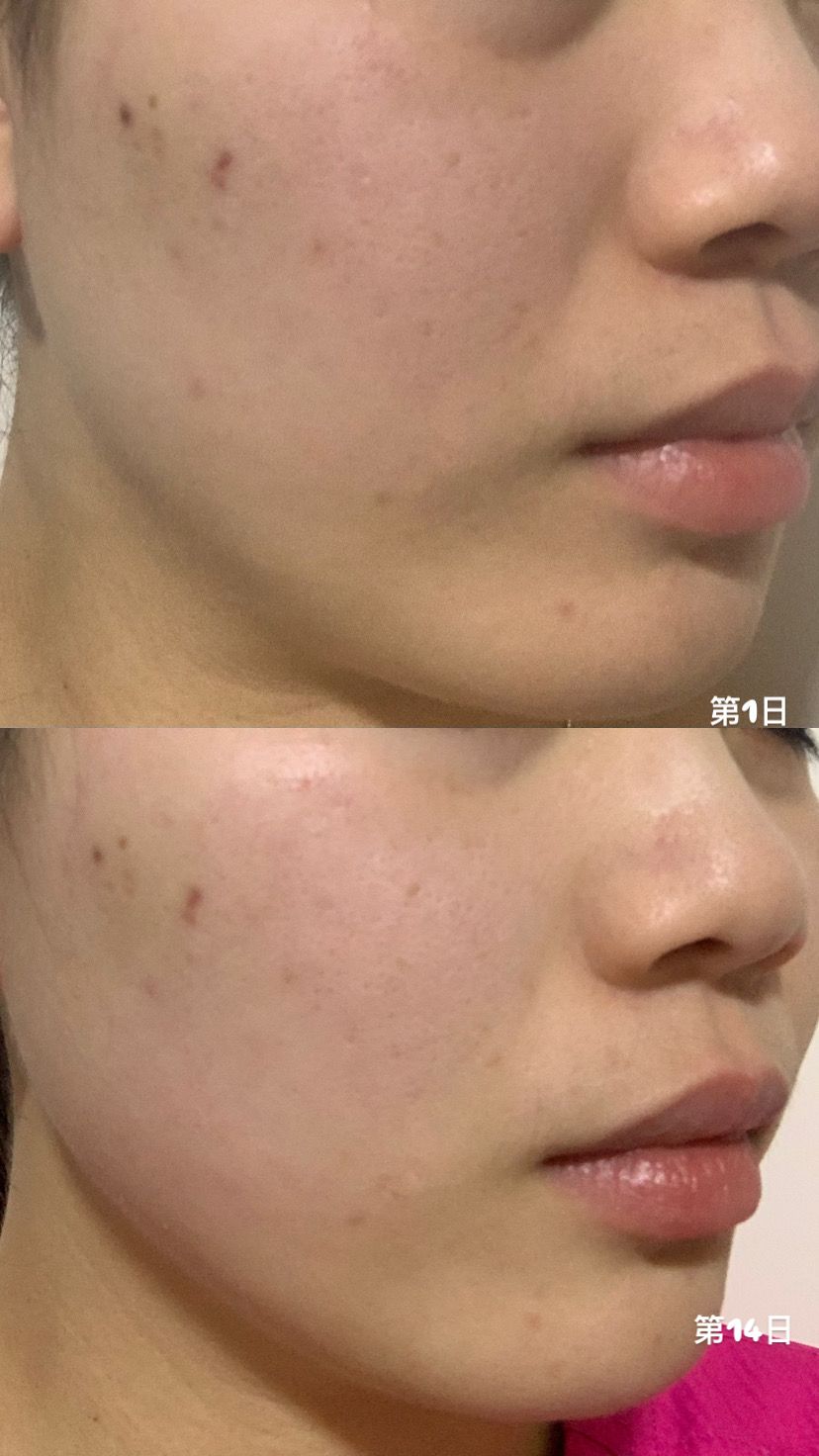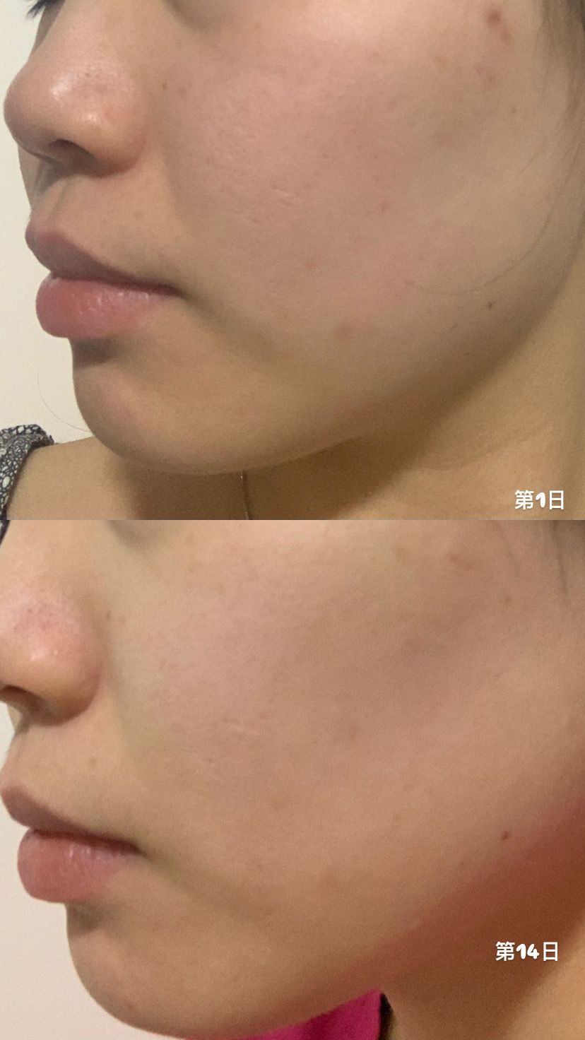 用左1日後,面部皮膚細胞已經立即變得好飽滿,到第14日,面部法令紋也減淡咗唔少。本身摸上面,會感到粗糙、凹凸不平、及脫皮現象,但持續用美容液後,feel 到面部細胞充滿水份。