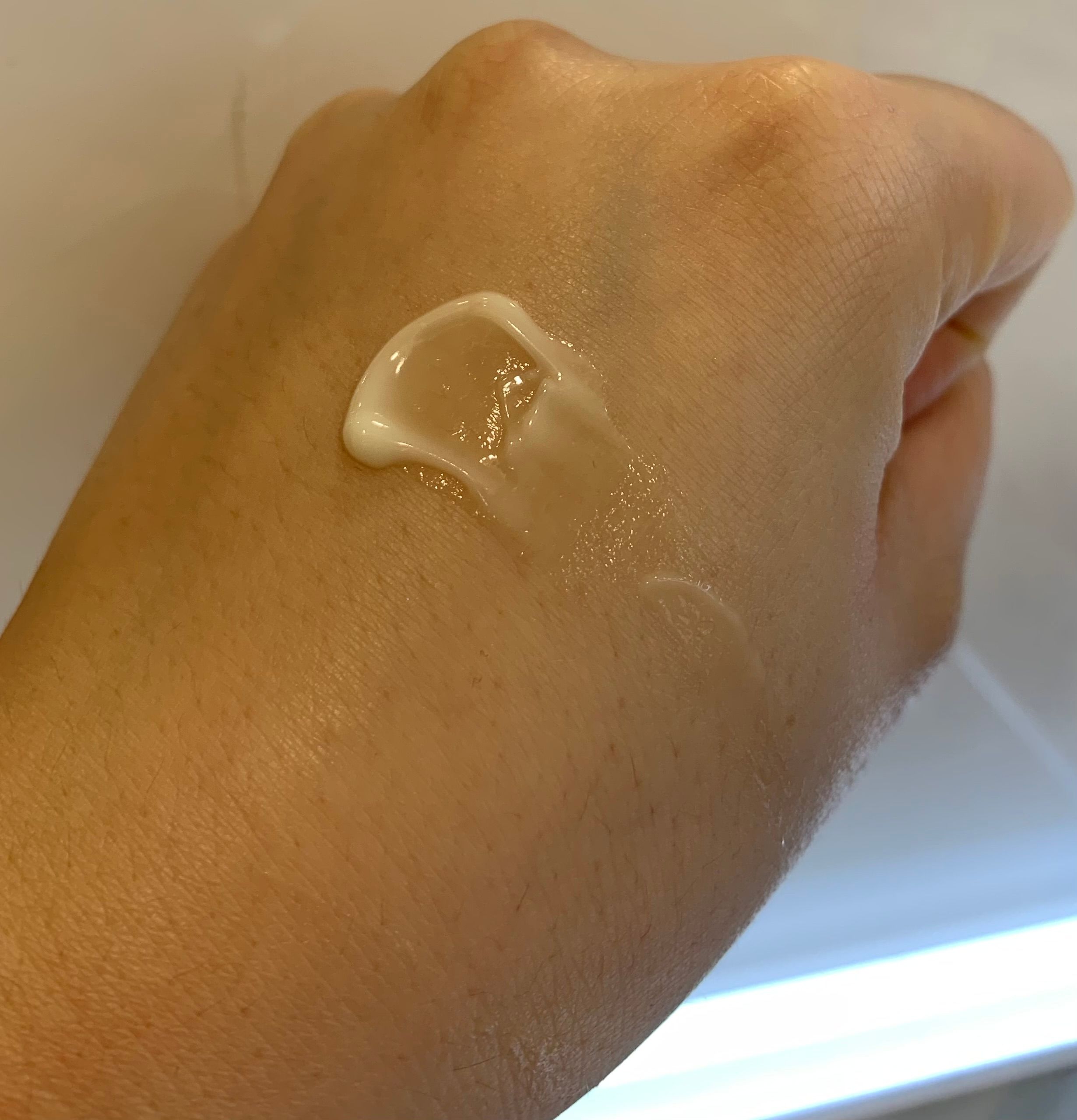 一唧出嚟,香香的。這款乳霜質地輕盈不黏膩,搽上面後,有種推開泡泡的感覺。內含保濕成分和SPF50+ PA++++防曬,適合現時偏乾肌的我。單擦就提亮膚色,變白左;搭配底妝時,更讓妝容持久服帖,一整天都保持玻璃光澤感。原本擔心會太油,但意外清爽,秋冬乾燥天氣必備!整體來說,性價比高,推薦!
