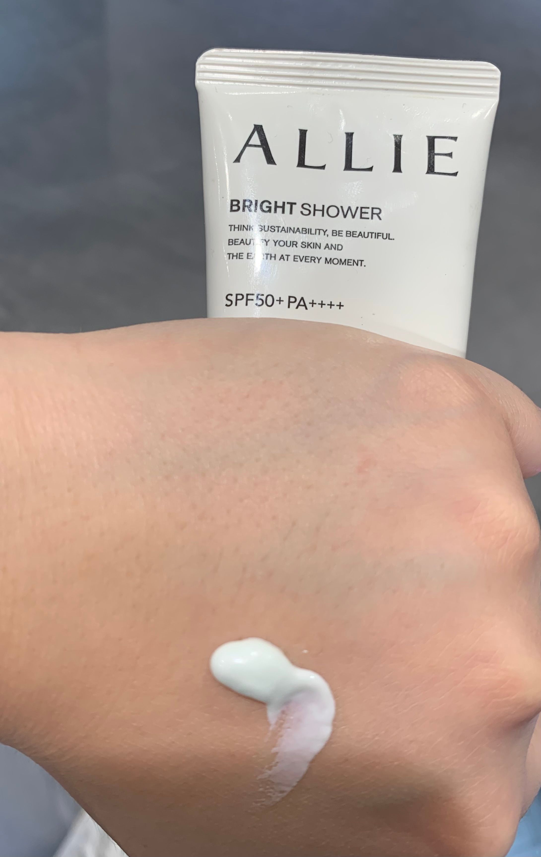 ALLIE 持采亮化UV防曬水凝乳系列有4個產品,我選擇的係 — 光肌茉桃香 Bright shower。我較少化妝,所以若果防曬可以順便有少少遮瑕作用,會更加好。而依款防曬就符合我的口味,佢防曬之餘更有美白、少少遮瑕功效。另外,佢可以臉部、身體兩用,每款都有不同的淡雅清香與微潤色效果。但若果搽身體,會有啲肉痛,因為都少貴,所以主要都係搽面。