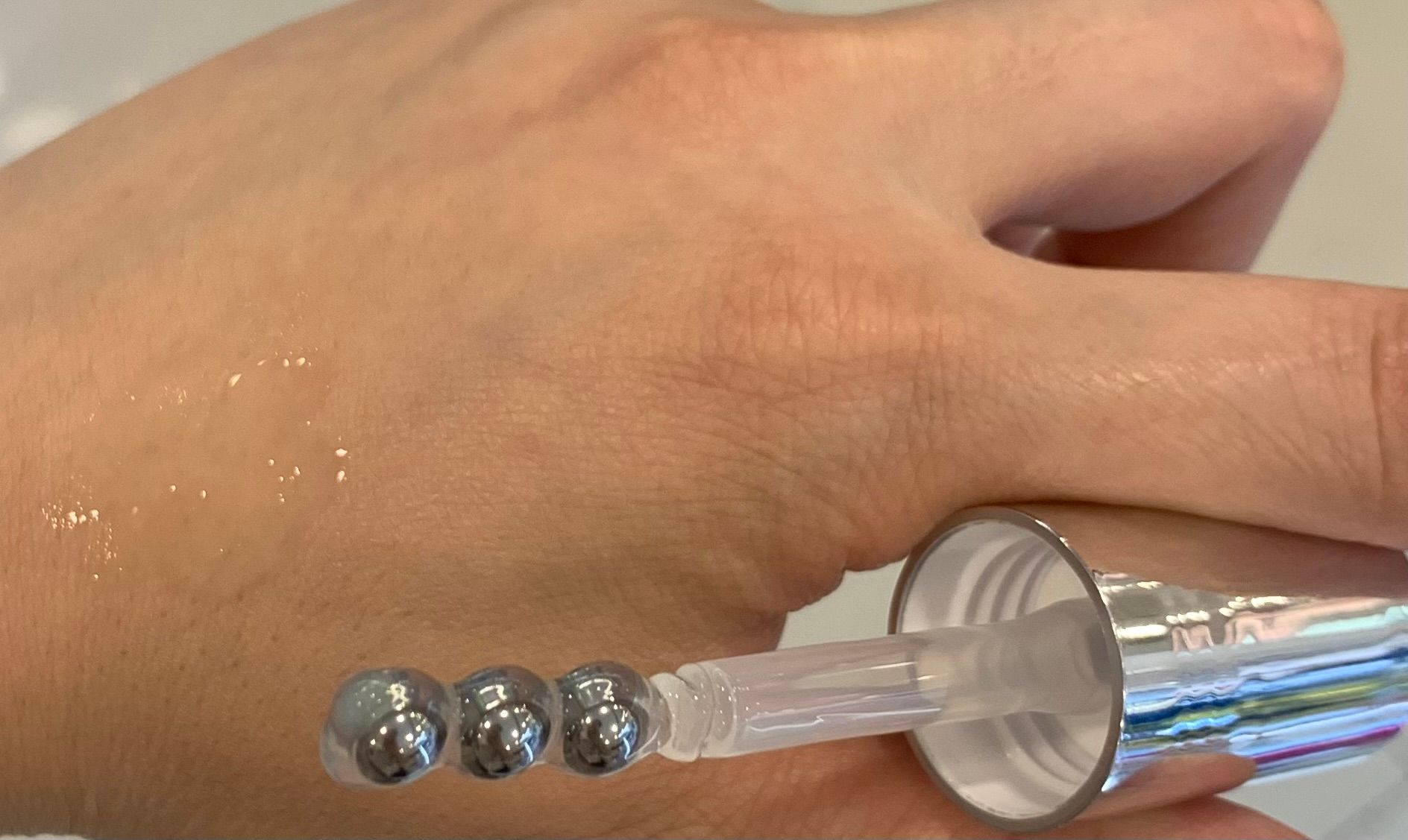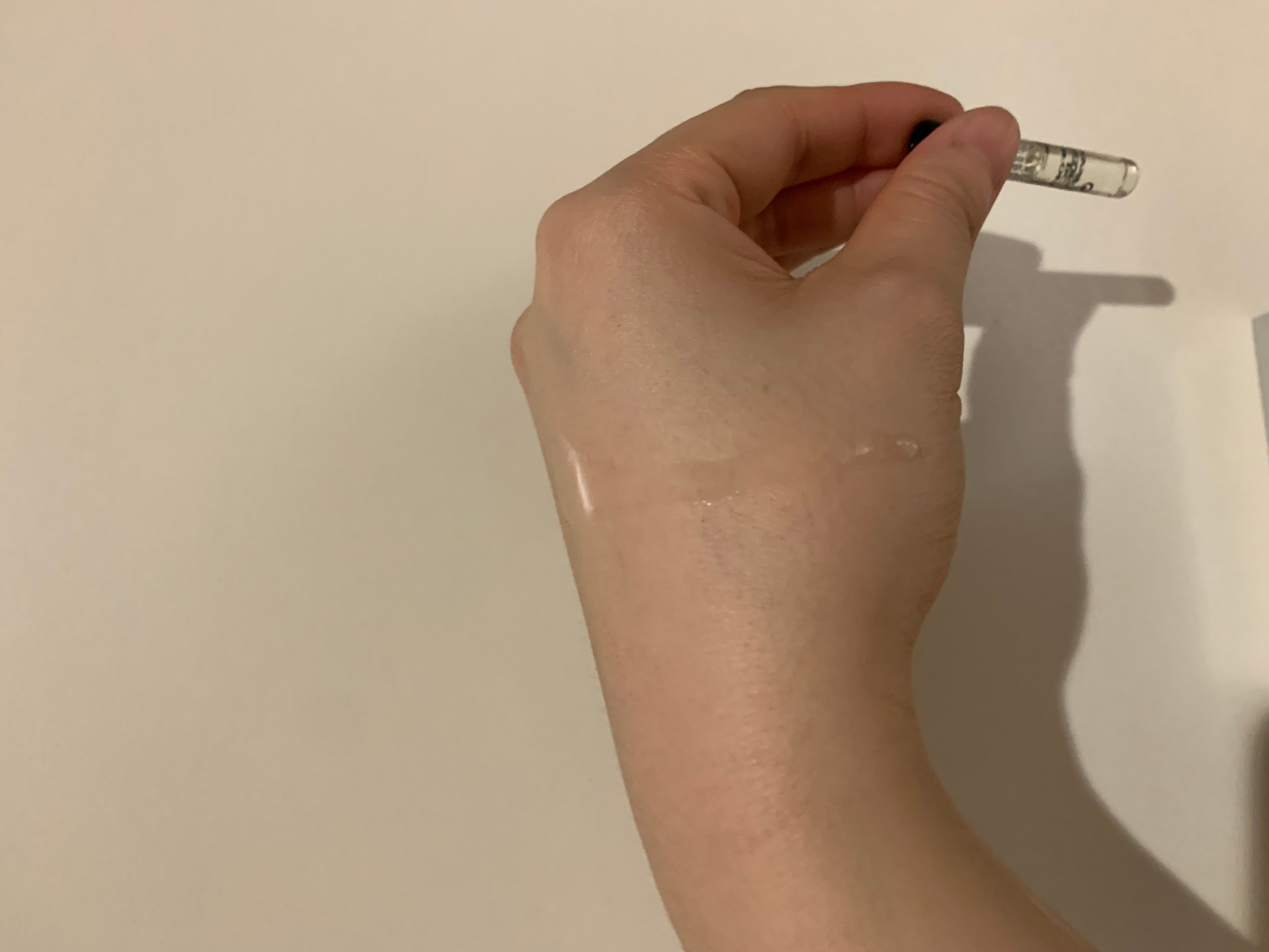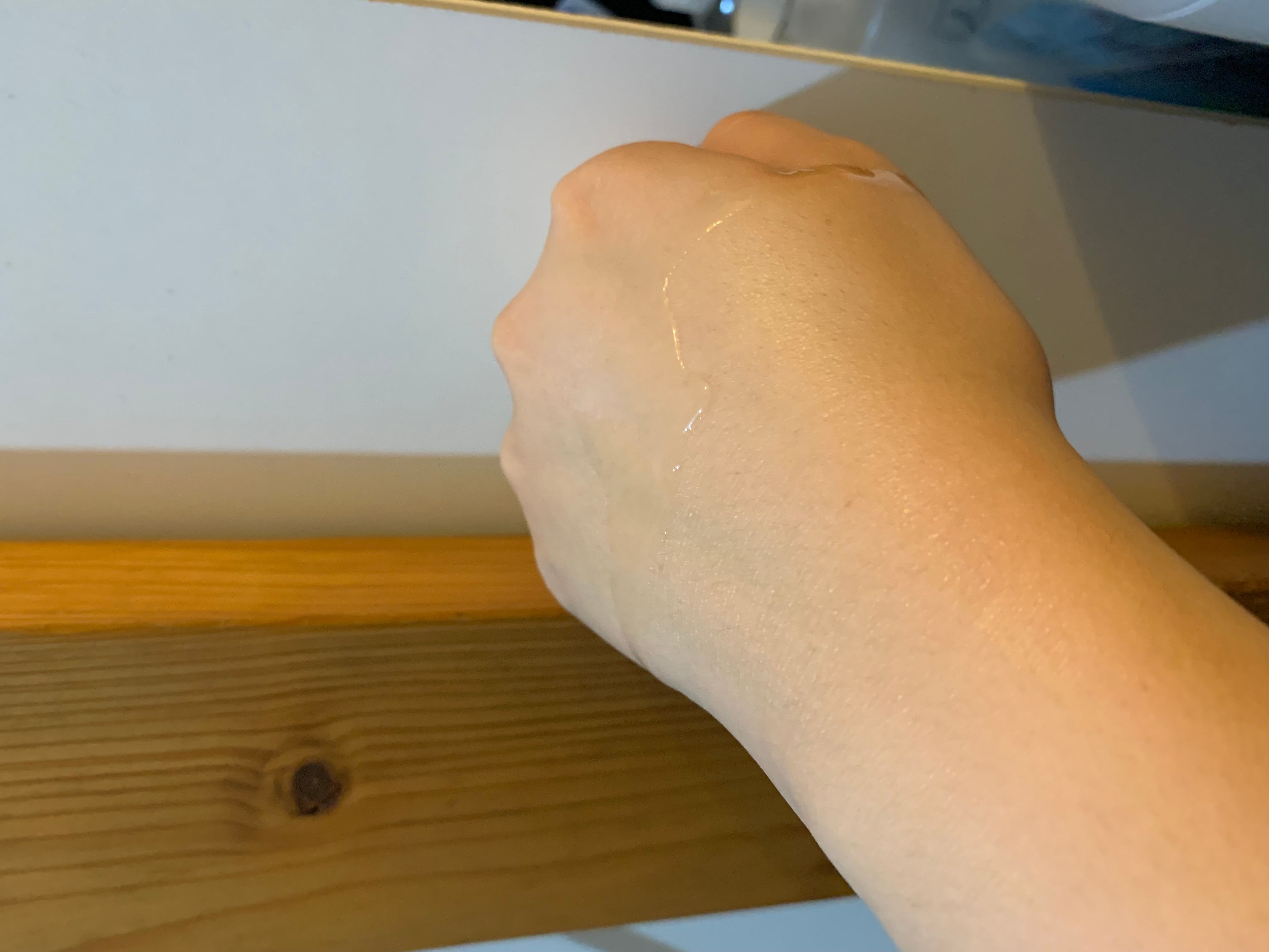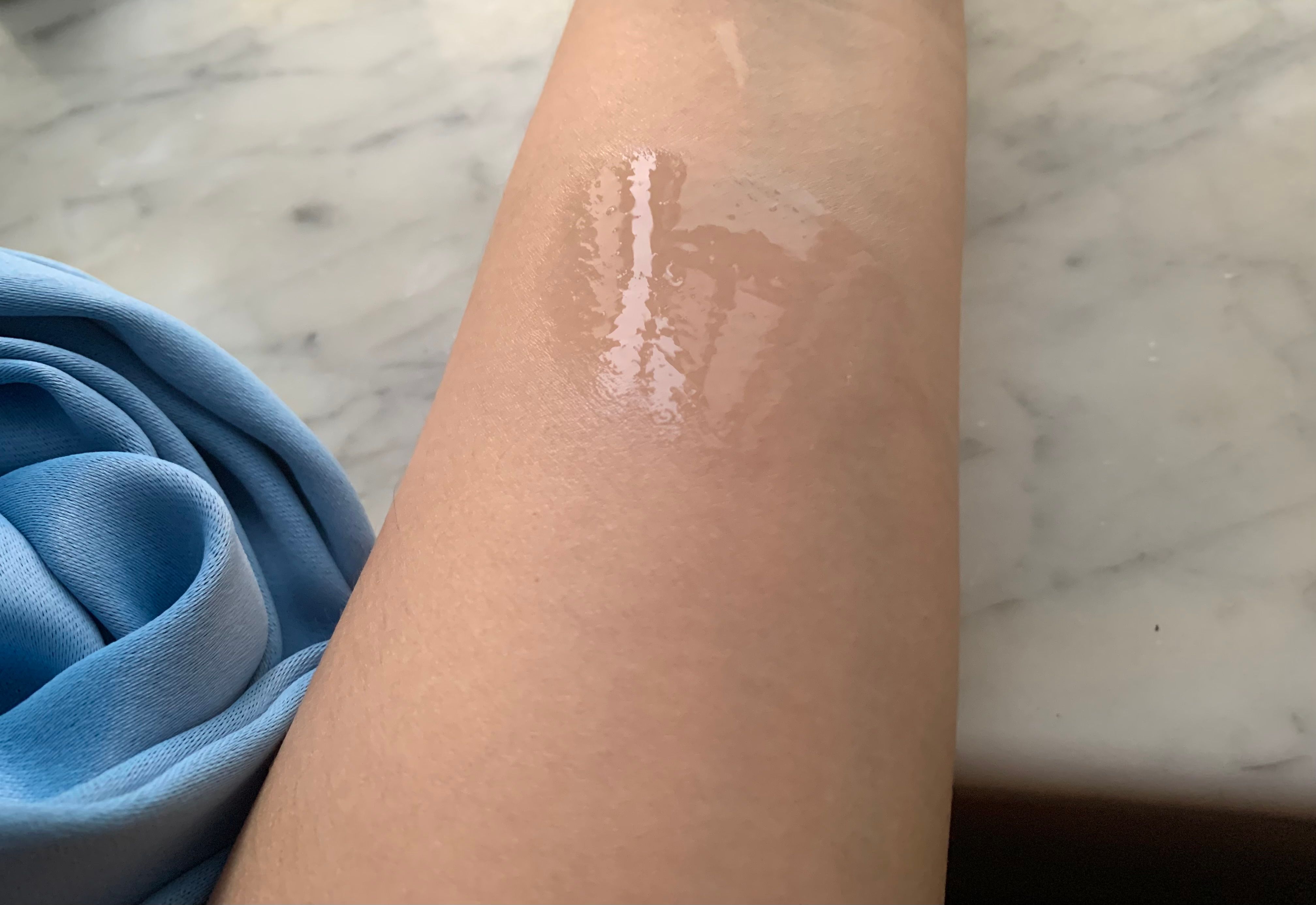 其質地輕盈水潤似啫喱,推開超快吸收,比多幾滴係面部,都不黏膩,輕輕拍面就好快吸收。擦完後底妝服貼,不會有擦膠碎出現,感覺唔錯。推!