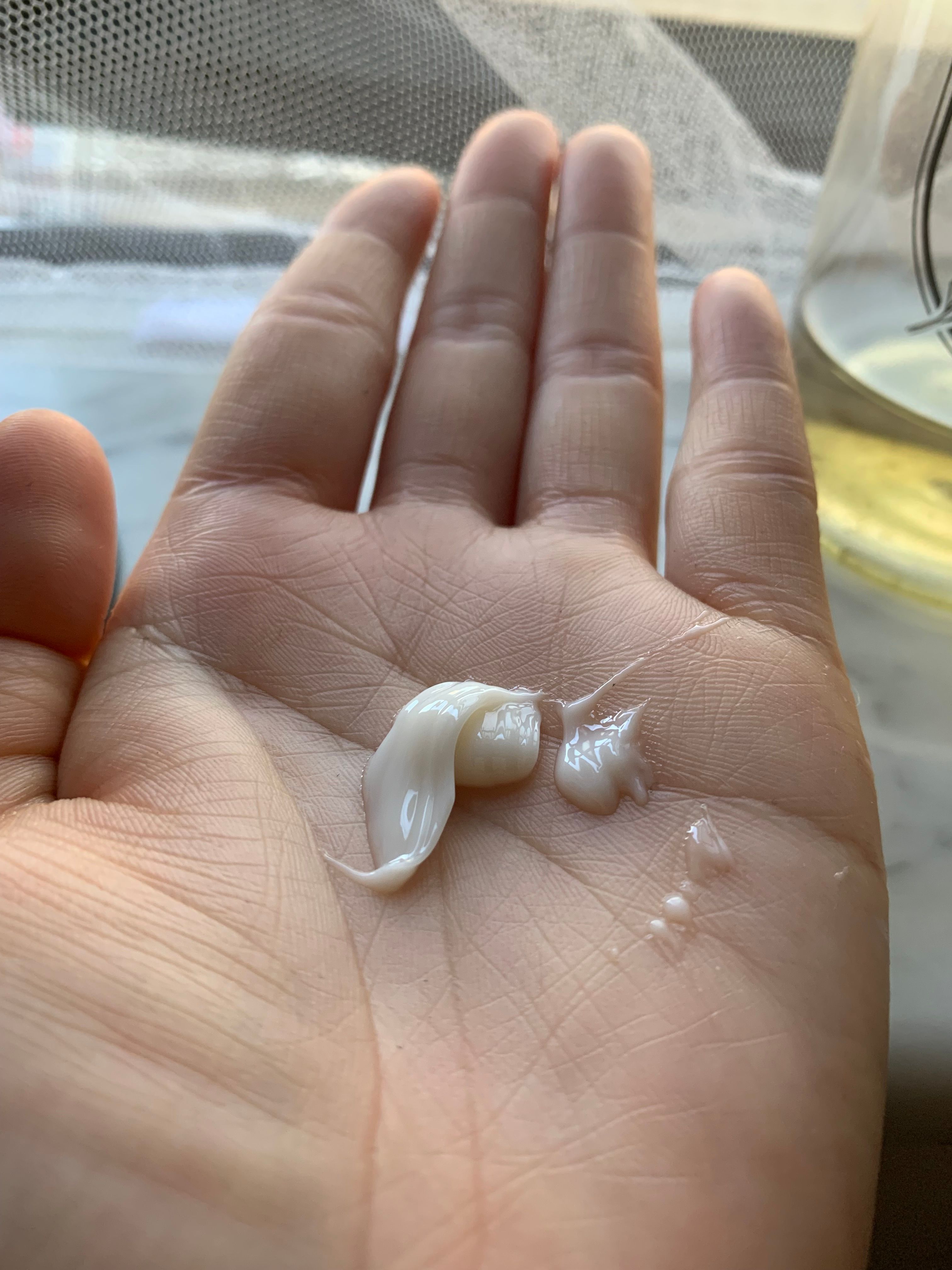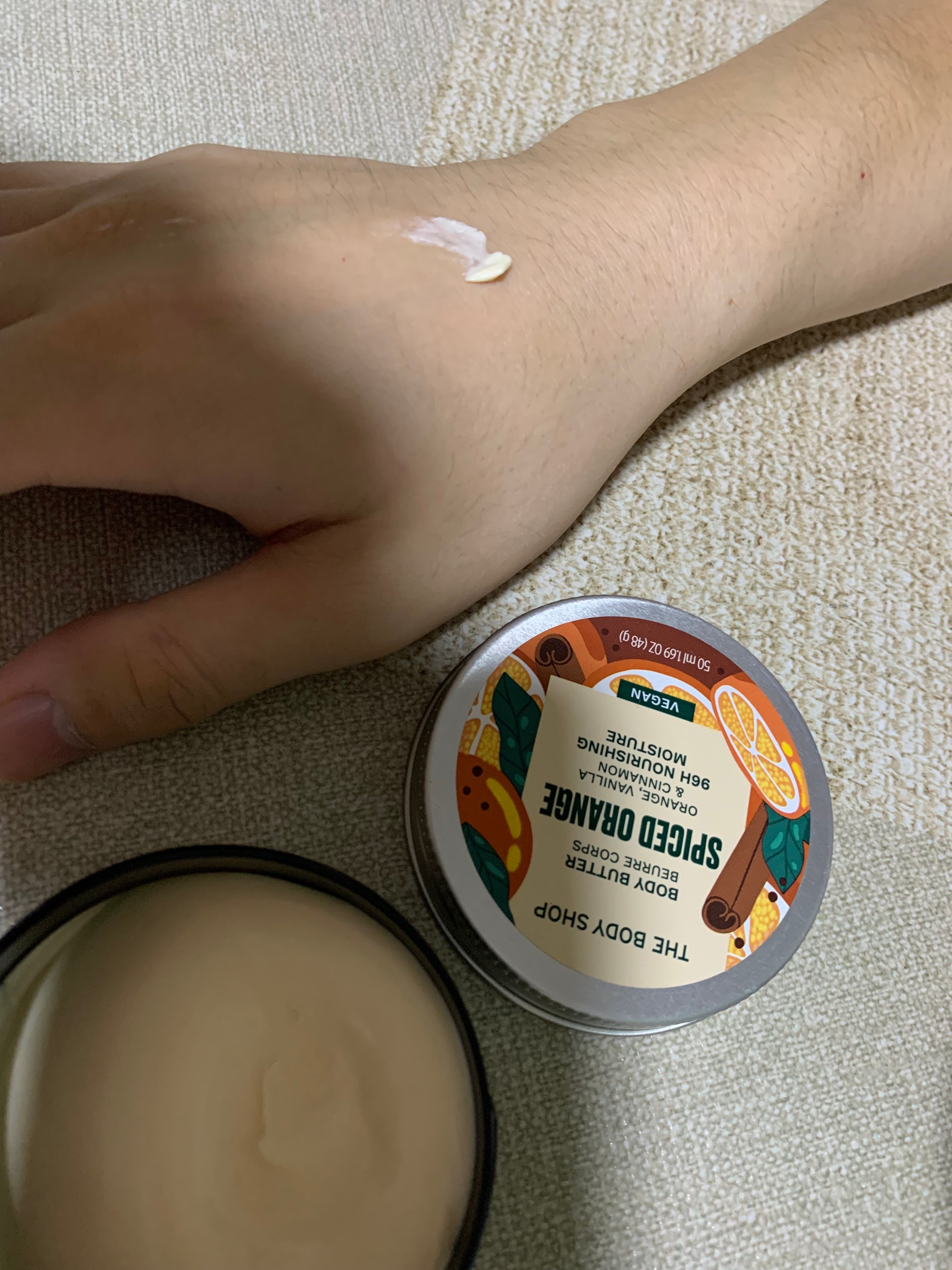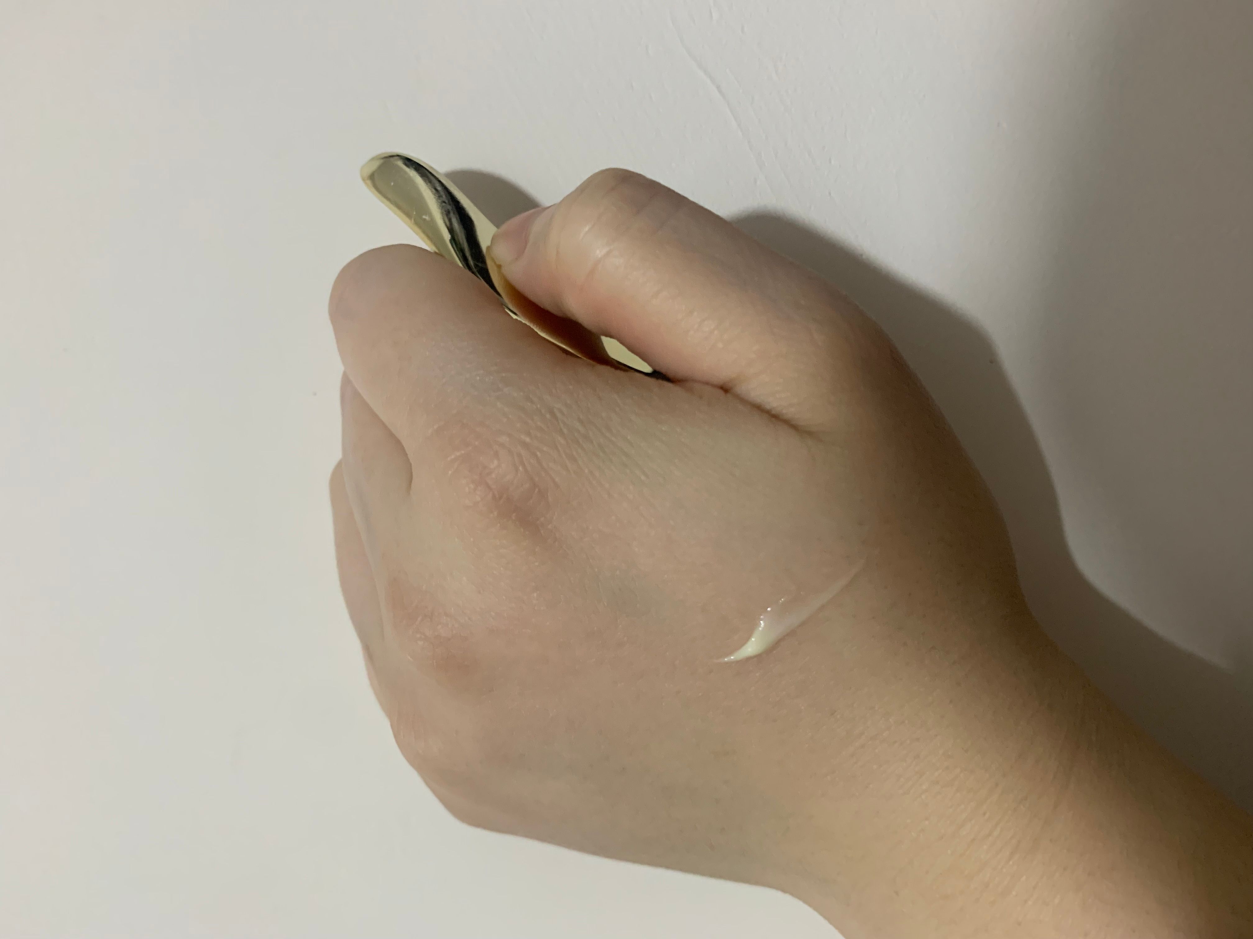 有淡淡的香味,質地比較潤,但用後唔會好笠,慢慢用手心推開,好快吸收。