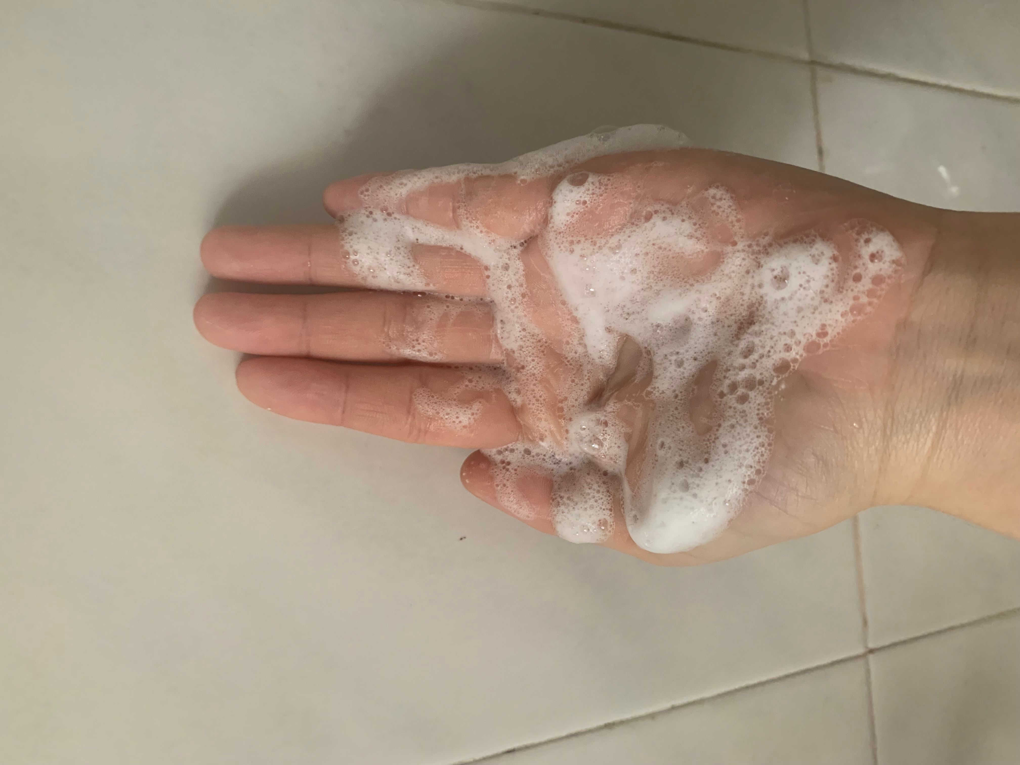 早晚使用。洗面膏放於手心內,不使用其他工具,加水都能搓成厚厚同好多的泡沫。