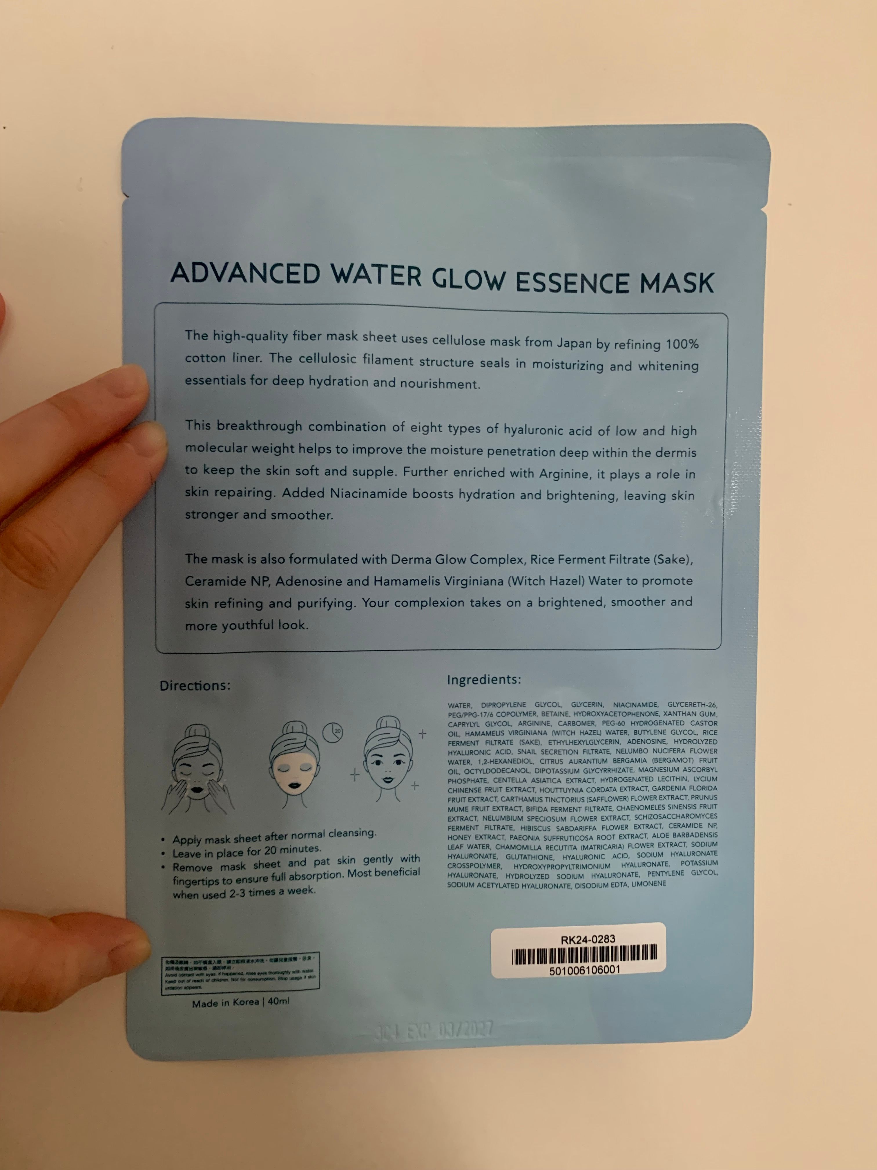 這片面膜精華超多,可以敷頸同手,敷上20分鐘後,摸起來滑溜溜,還帶點自然光澤。雖然精華略黏但吸收後清爽不悶,CP值又高,係一個唔錯的選擇。