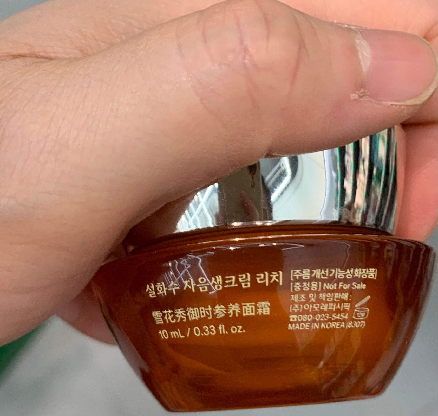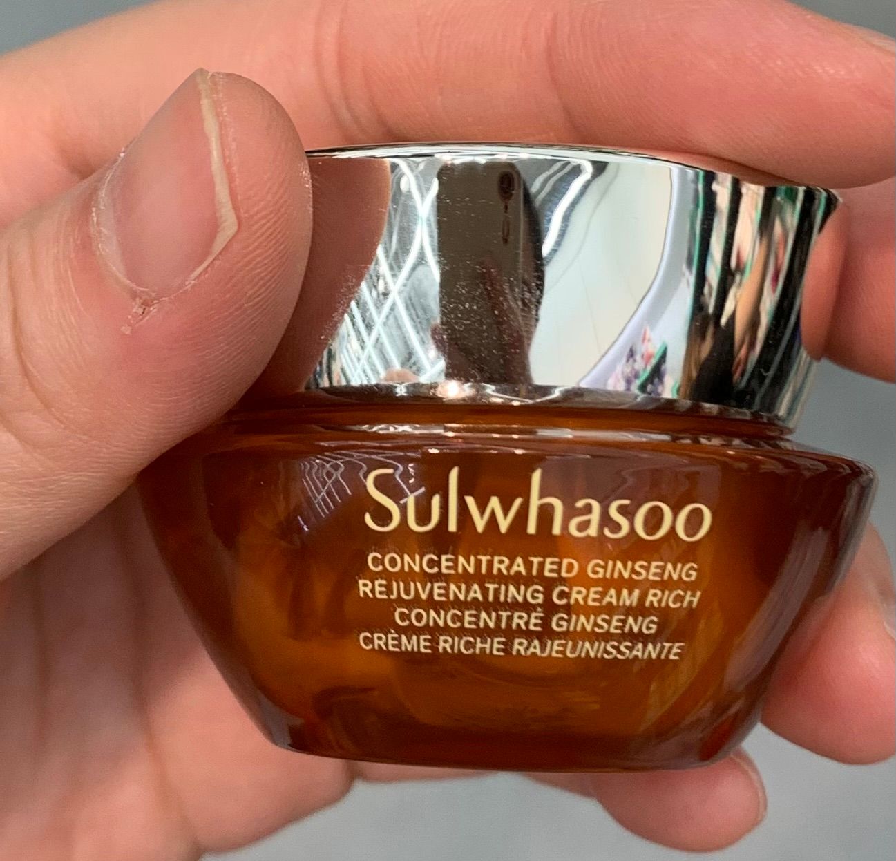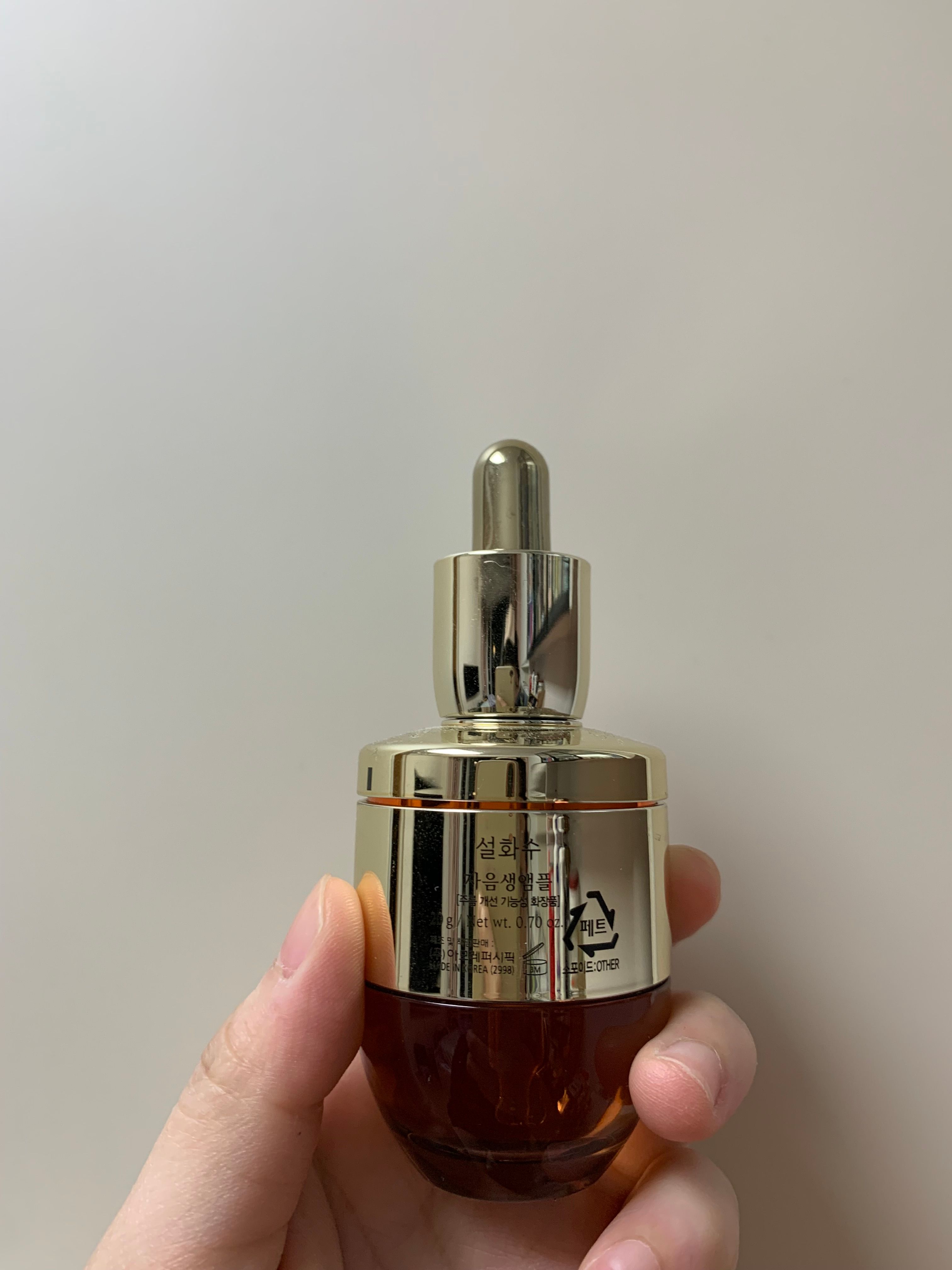 其人參換顏精華露,感覺唔錯。一唧出嚟,有濃濃嘅人參味。質地輕盈,但偏有少少油質,適合秋冬天時使用。用左一個月左右,面部皮膚緊緻有光澤,起碼唔會洗完面後好乾燥。感覺唔錯。