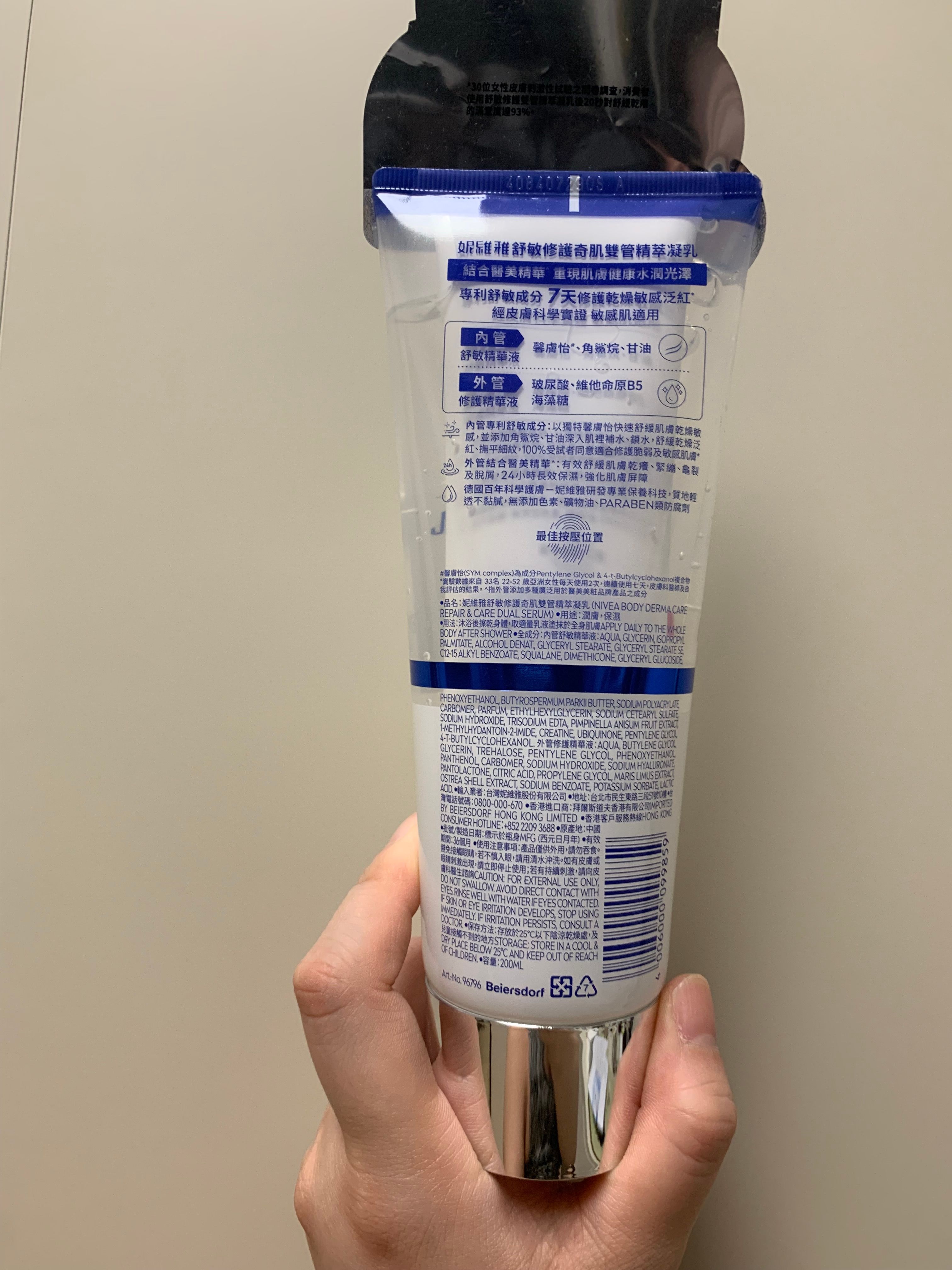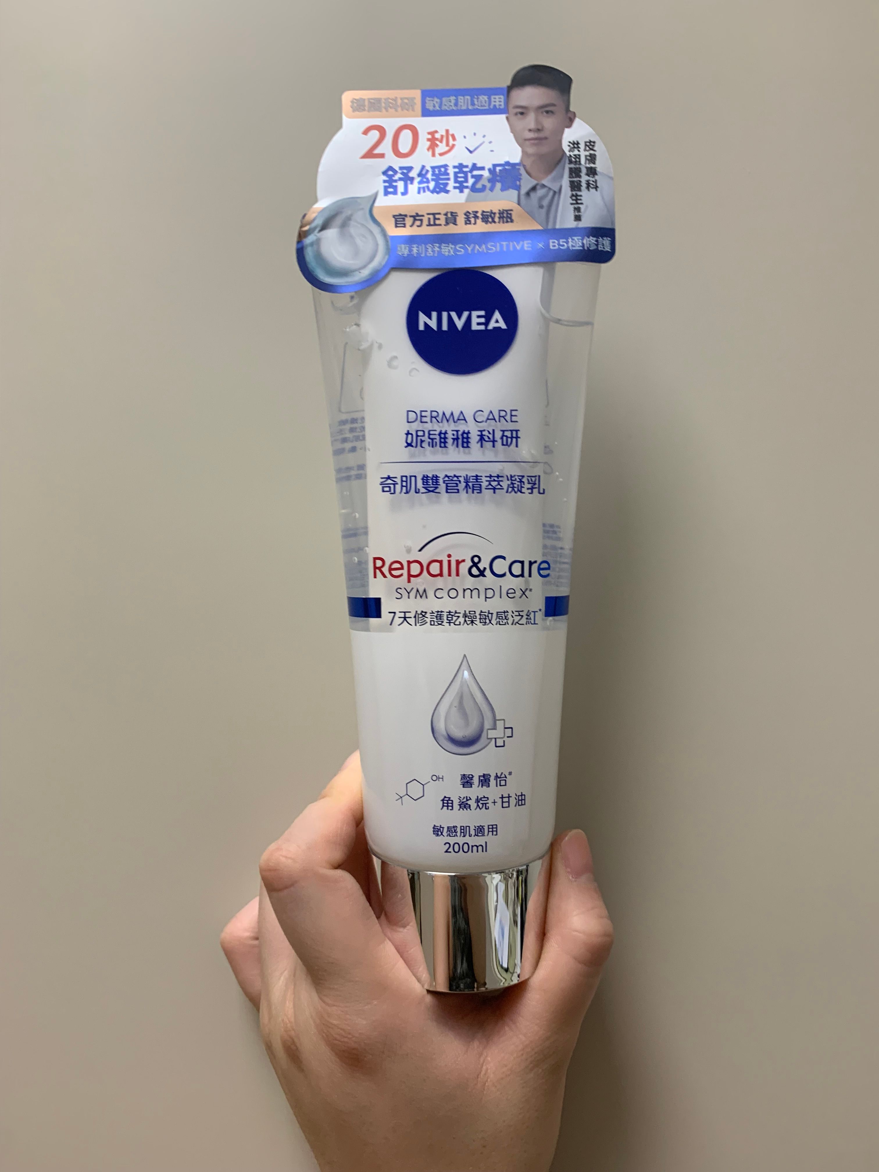 要混合透明質酸、維他命B5等補濕精華,質地像gel,塗抹後幾分鐘就感覺臉部輕微繃緊。