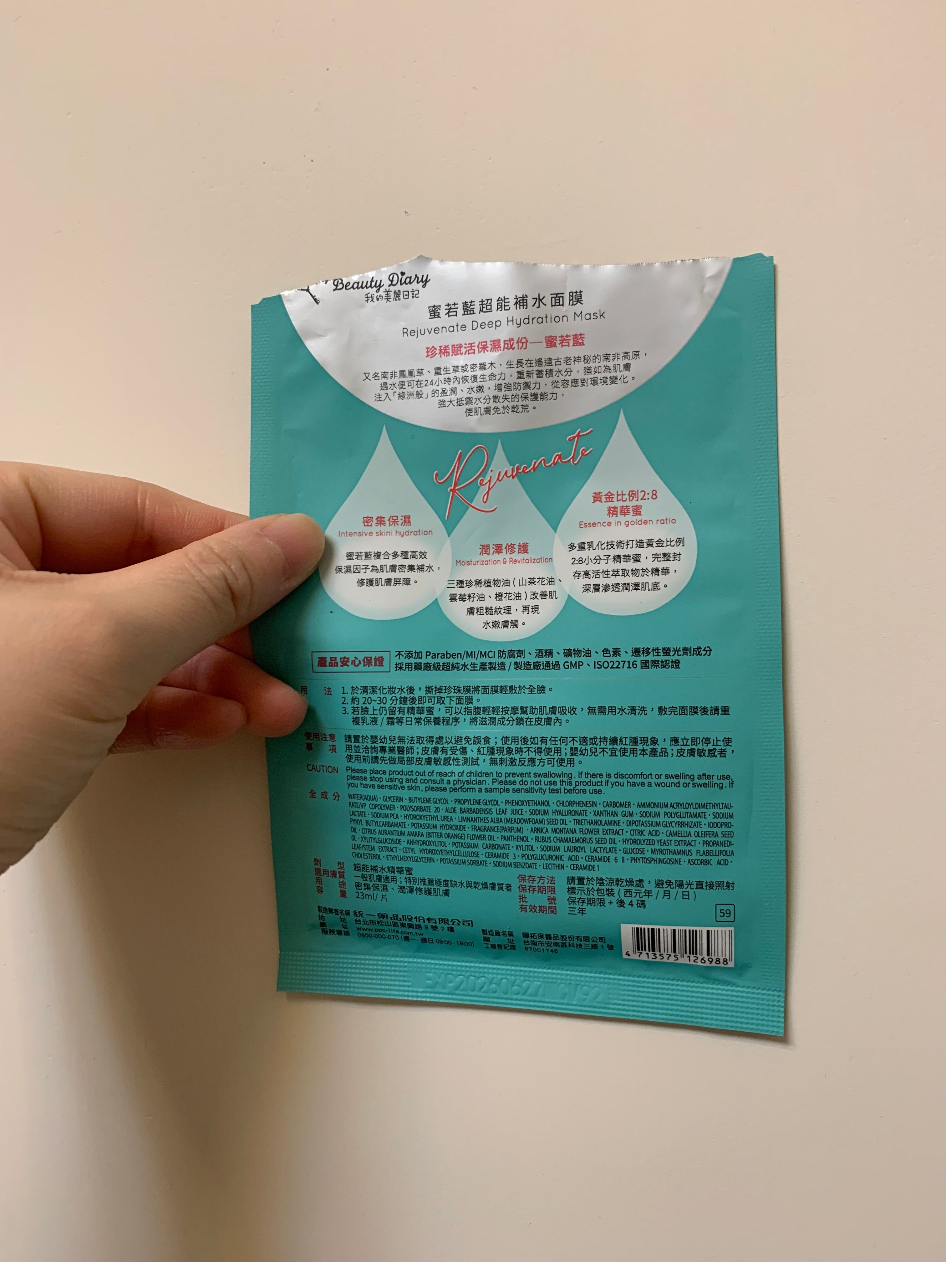 【我的美麗日記 Rejuvenate Deep Hydration Mask 蜜若藍超能補水面膜】 使用評價