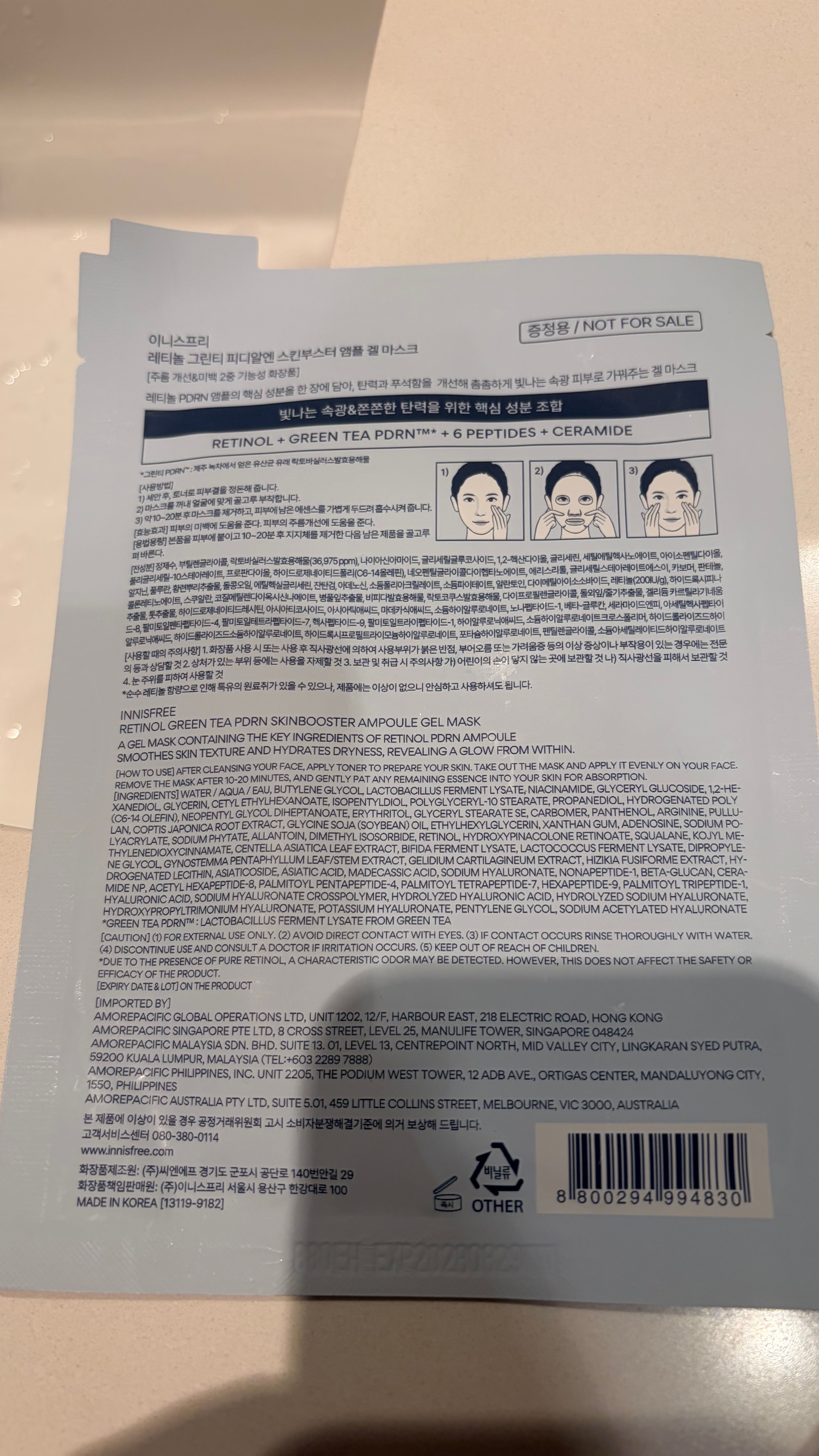 RETINOL GREEN TEA PDRN SKINBOOSTER AMPOULE GEL MASK