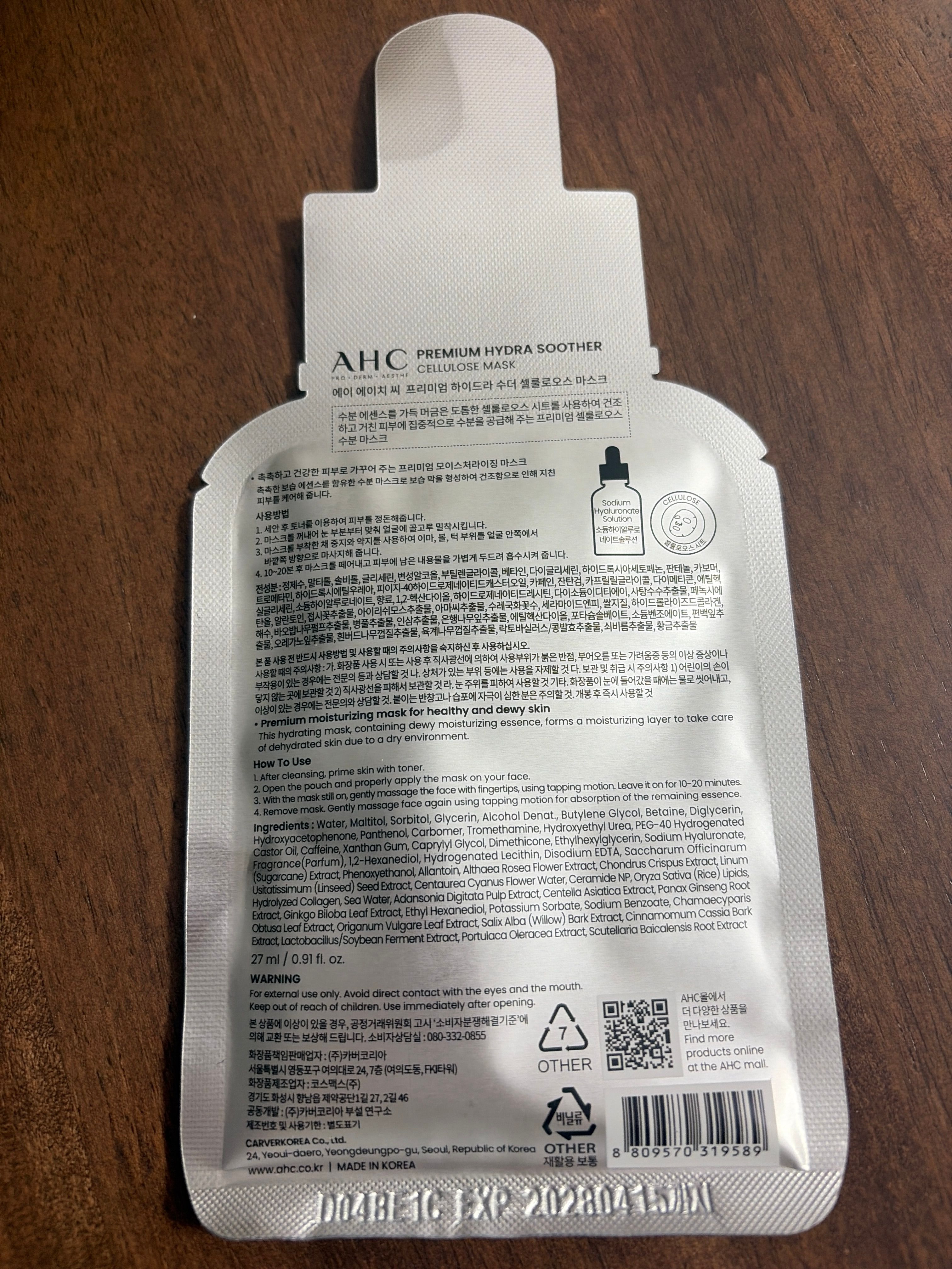 Premium hydra soother cellulose mask