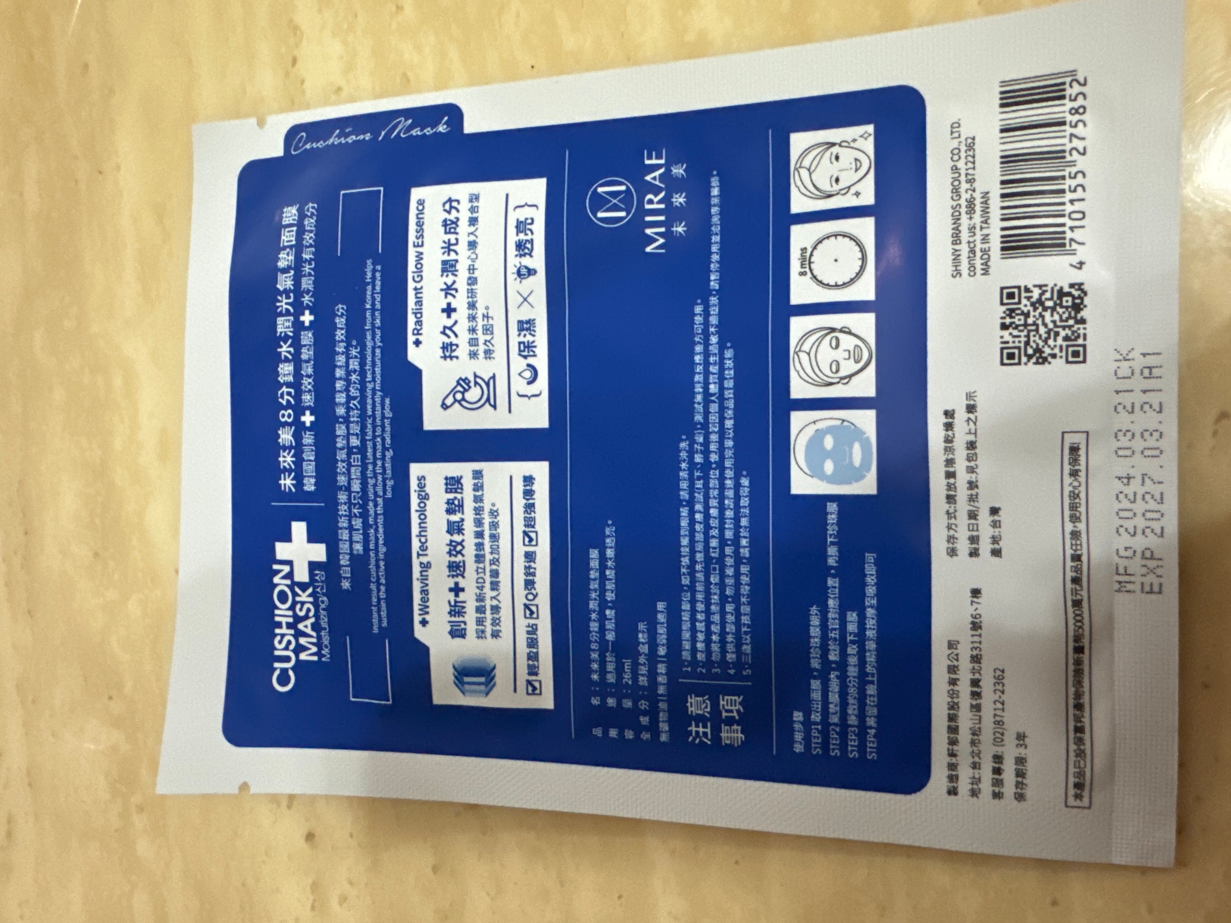8分鐘水潤光氣墊面膜