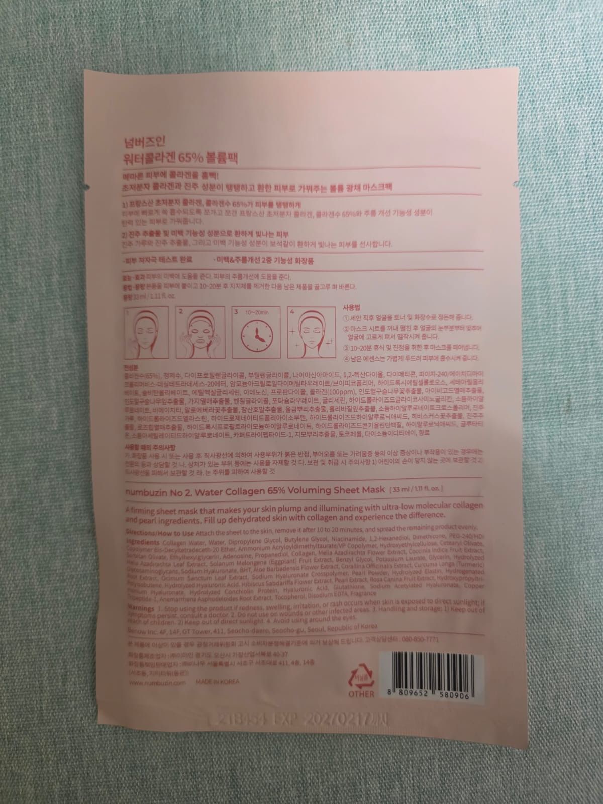 No.2 Water Collagen 65% Voluming Sheet Mask